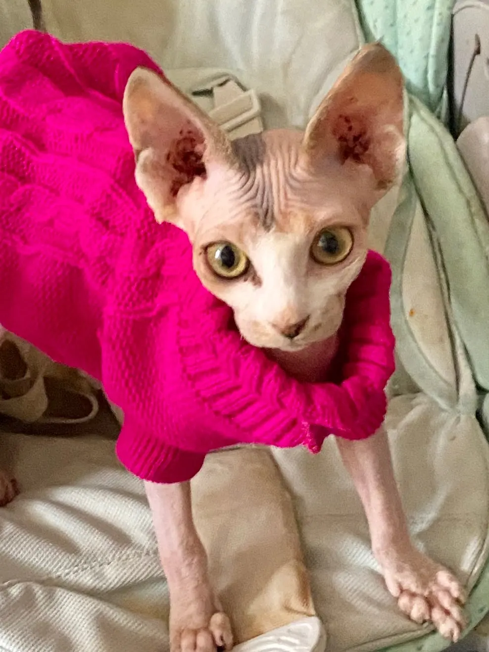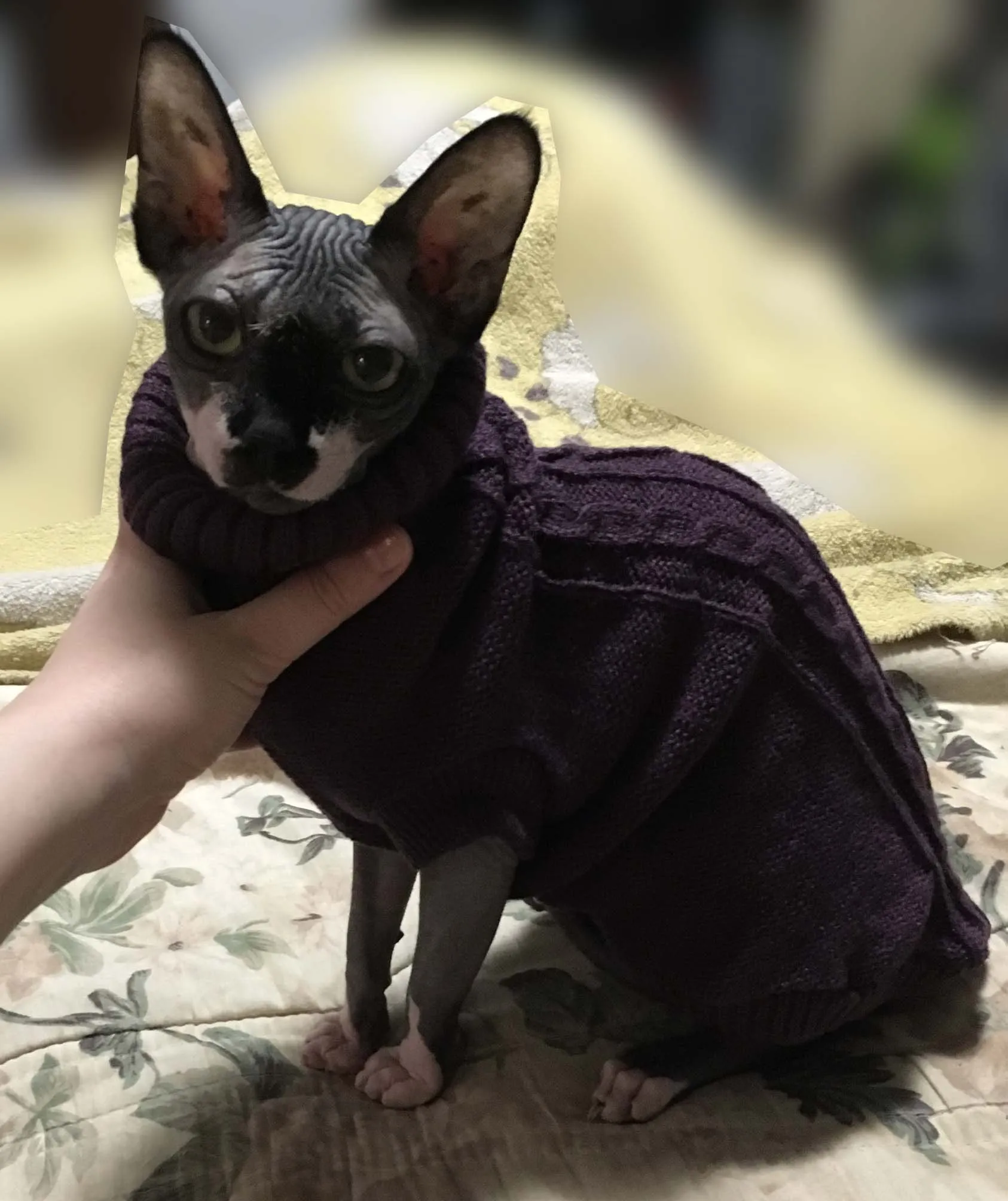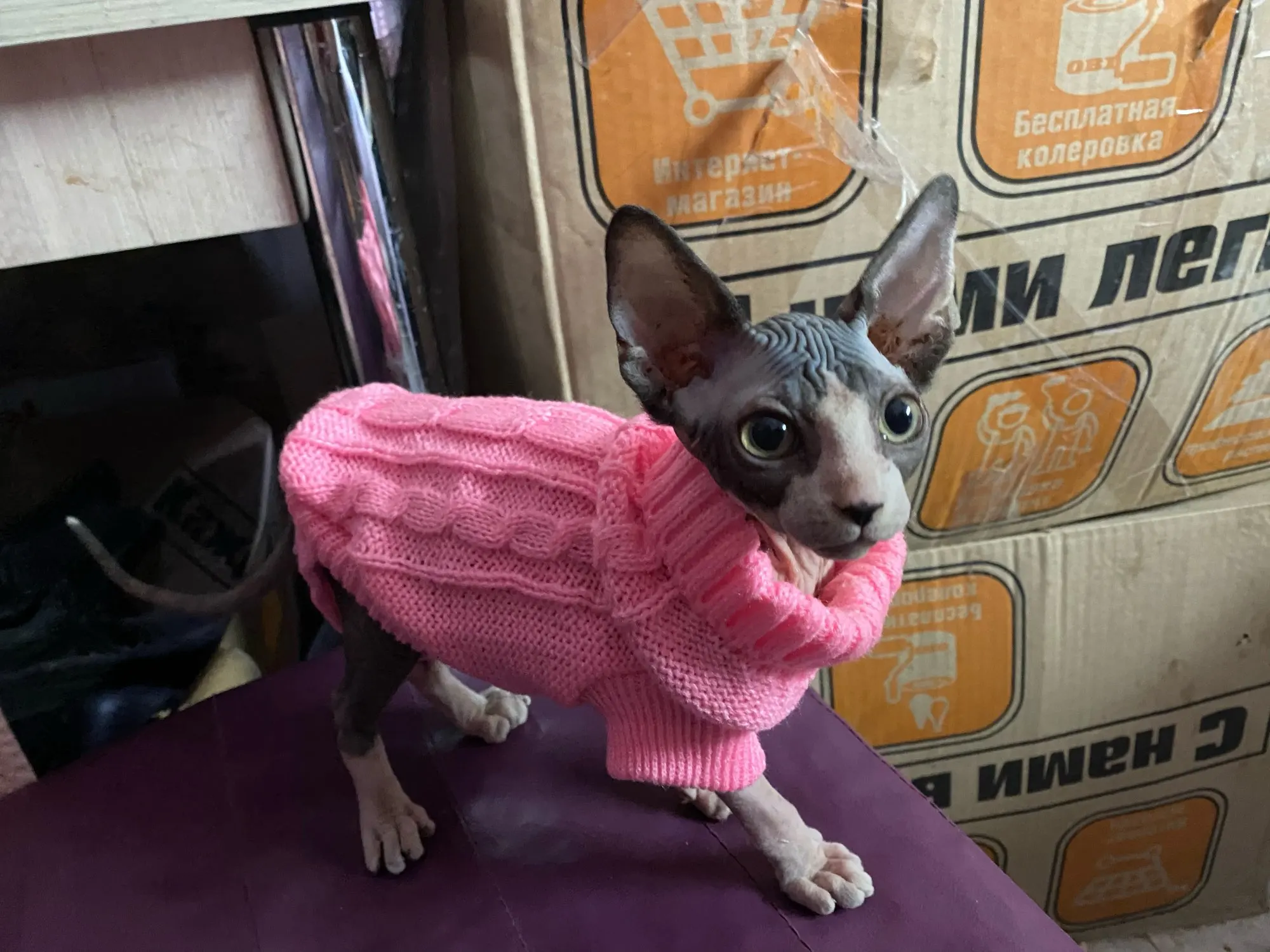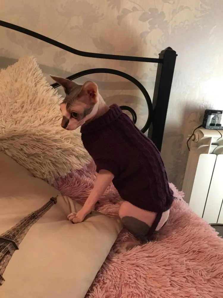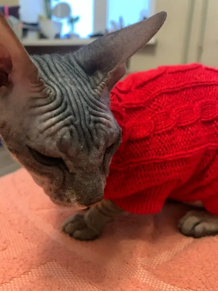 На 5 кг сфинкса размер L маловат, а так отличный свитерок. Рекомендую к покупке.