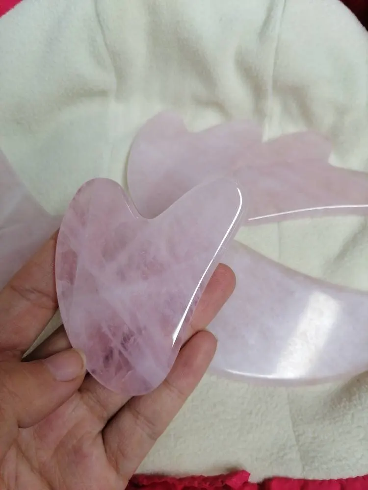 Камень для акупунктурного массажа лица, из натурального розового кварца, нефрита, гуаши, розового кварца, массаж скребком гуаша