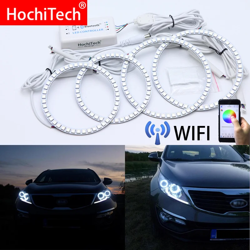 Wi-Fi, Беспроводной с несколькими цветами RGB Цвет светодиодный ангельские глаза гало кольца Дневной светильник LED DRL для Kia Sportage 2011 2012 2013 2014