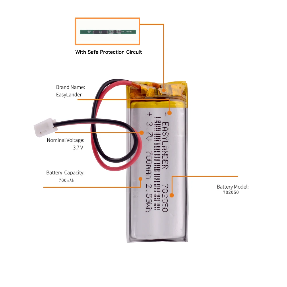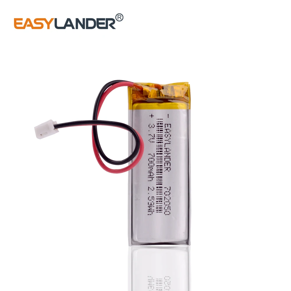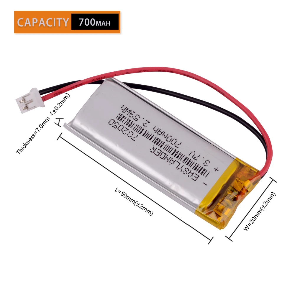 JST 1,25 мм 2 pin 3,7 V 700mAh 702050 литий-полимерный LiPo аккумуляторная батарея для Mp3 DVR PAD DVD bluetooth камеры