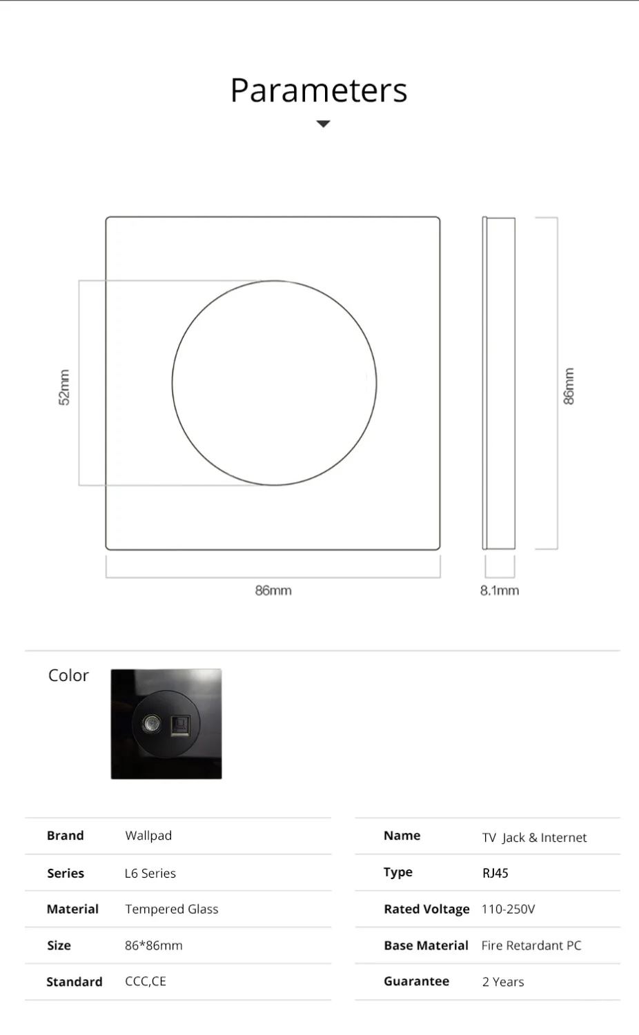 Wallpad L6 черная панель из закаленного стекла, одиночный двойной C...