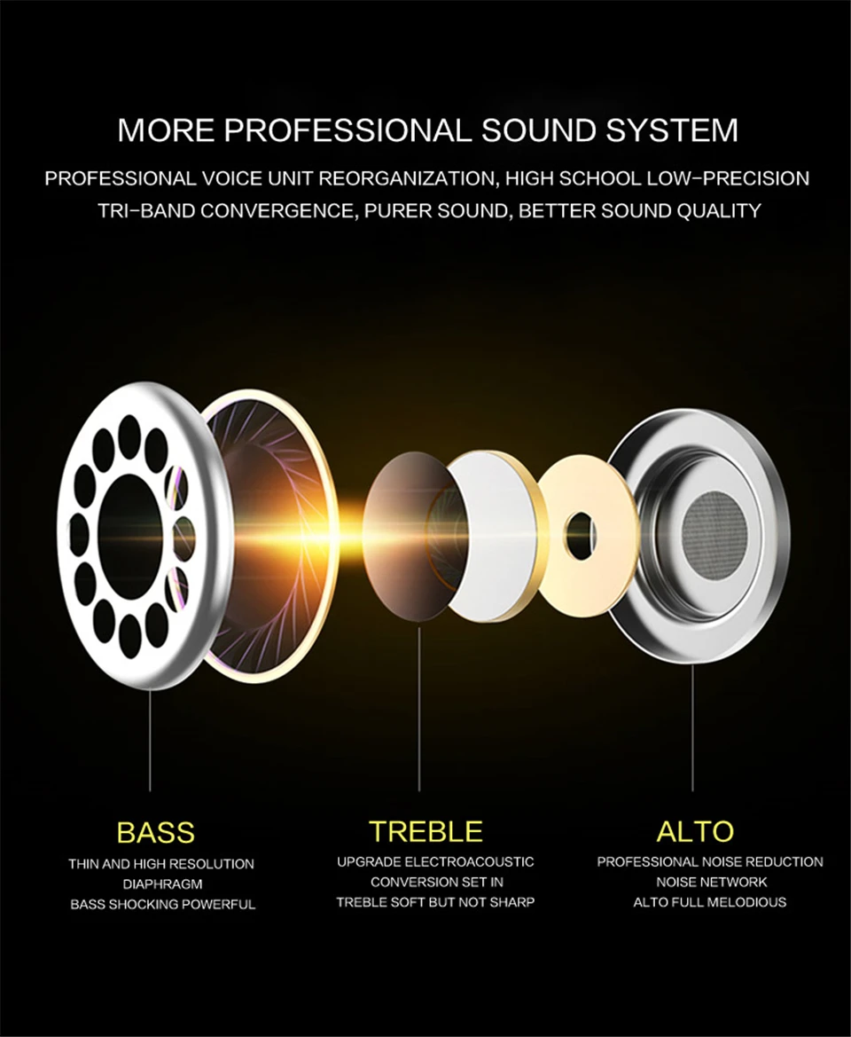Оптимизация качества эксклюзивных патентов, металлических композитных вибрационных воспоминаний. Эргономичный дизайн, силиконовые наушники для ушей. Соединение ушей и хвостовой трубы с наклонным углом, удобно и легко носить. Он имеет высокое качество звука, Наслаждайтесь жизнью. Идеальный подарок для себя или друга