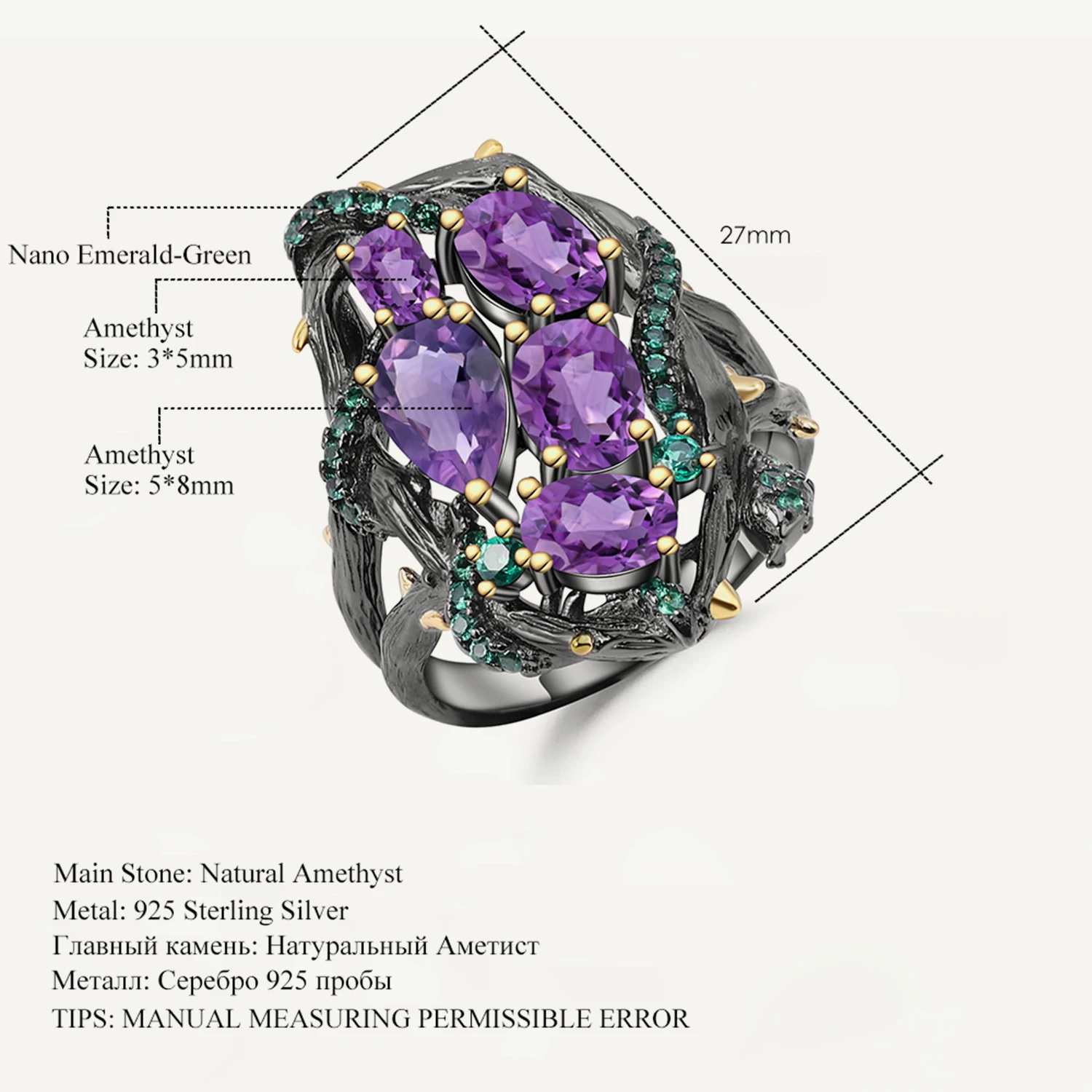 Женское кольцо с натуральным аметистом GEM'S BALLET, Настоящее серебро 925 пробы, винтажное ювелирное изделие ручной работы, 3.23Ct