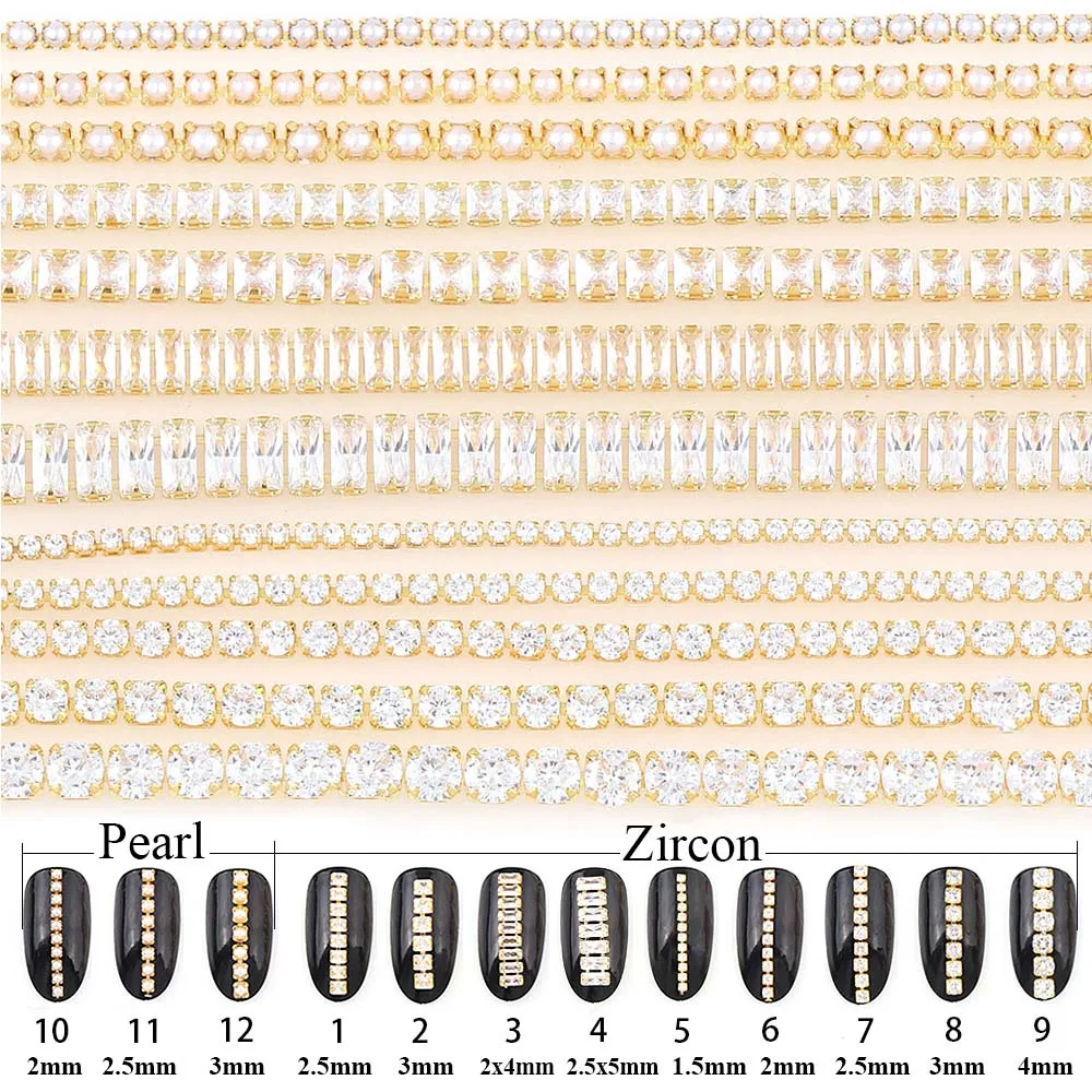 9-10 см блестящая цепочка для ногтей из циркона золотые наклейки для ногтей жемчужная цепочка для фототерапии украшение для ногтей украшения для ногтей ювелирные изделия сделай сам