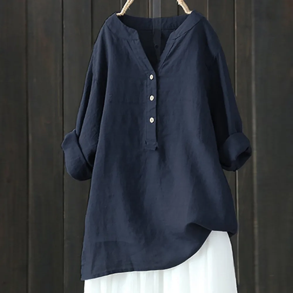 Женская Однотонная рубашка с воротником-стойкой и длинным рукавом, Повседневная Свободная блуза на пуговицах, топы