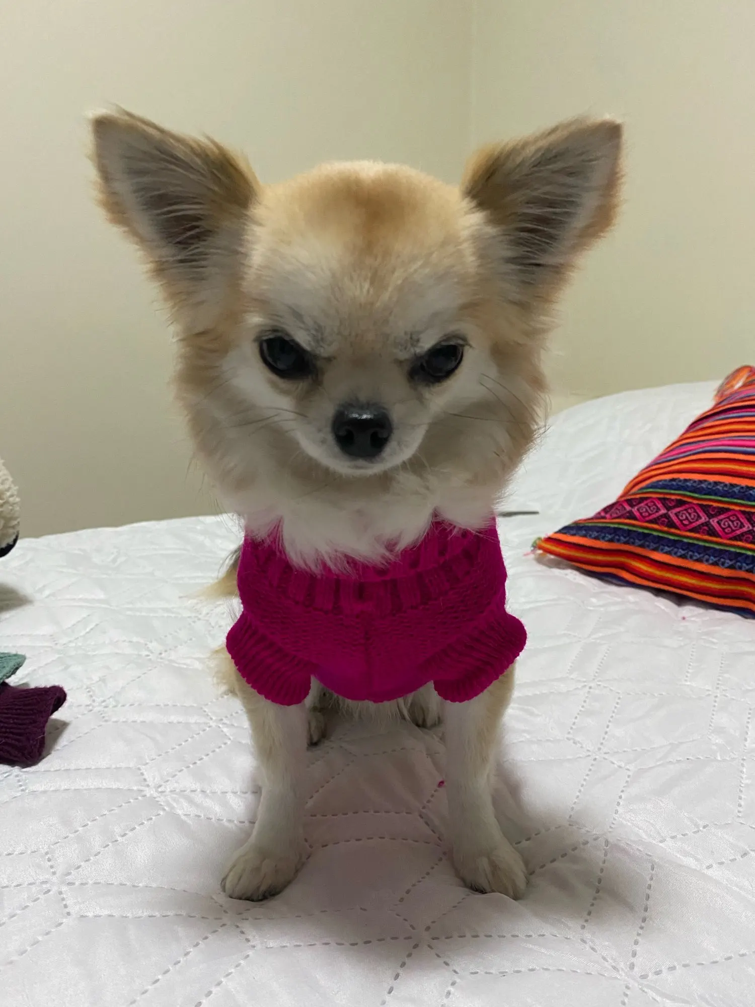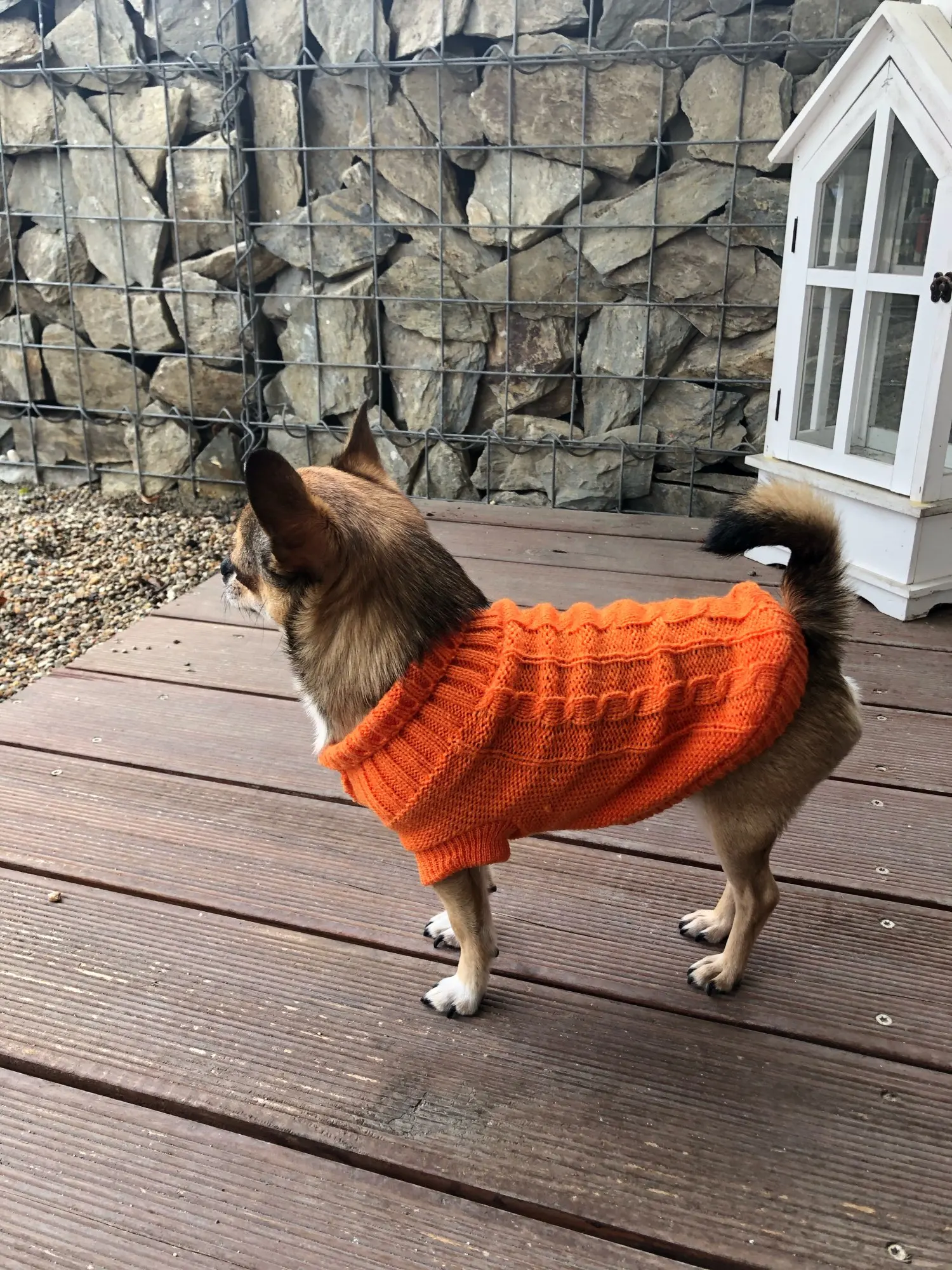 XS на щенка чихуахуа весом 1000 кг пока немного великовато, но очень мило! Приятный свитерок, заказали еще размеры для остальных собак.