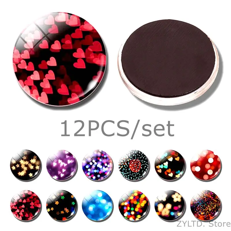 12 шт., стеклянные магниты на холодильник, в виде сердца