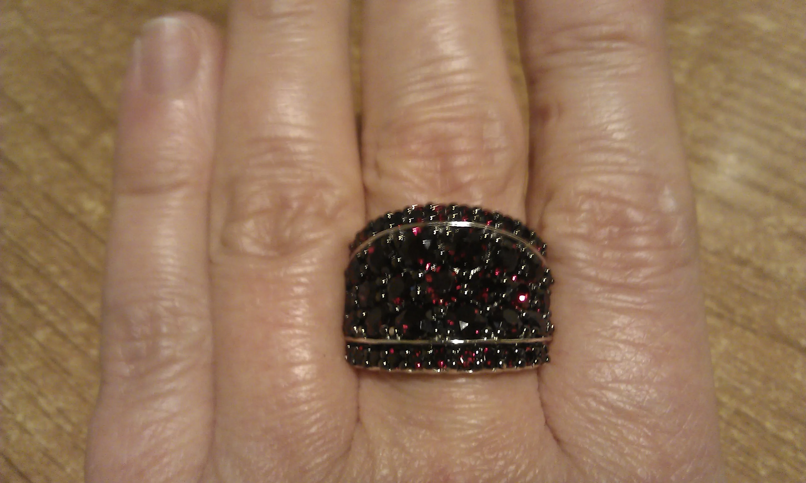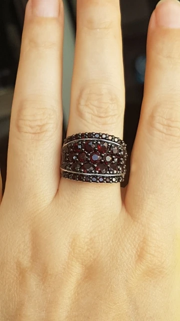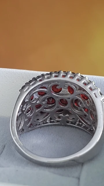 Красивое кольцо! Мне очень понравилось, как это кольцо смотрится именно на указательном пальце. Специально взяла его на этот палец. До этого покупала на средний, не очень понравилось. То кольцо найду куда деть, а это оставлю себе. Очень красиво выполнена обратная сторона кольца. Все изделия серебрянные, у меня много товаров из этого магазина и все ведут себя идеально в носке. Очень нравится, что лапки, держащие камушки, затемнены. Благодаря этому их не видно , видны только камни и их сверкание .