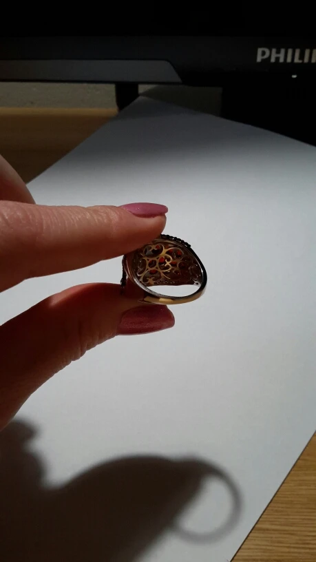 Очень красивое кольцо, немного маломерит (на 0.5 размера), но у продавца других и не бывает размеров. Работа аккуратная смотрится эффектно. Рекомендую.