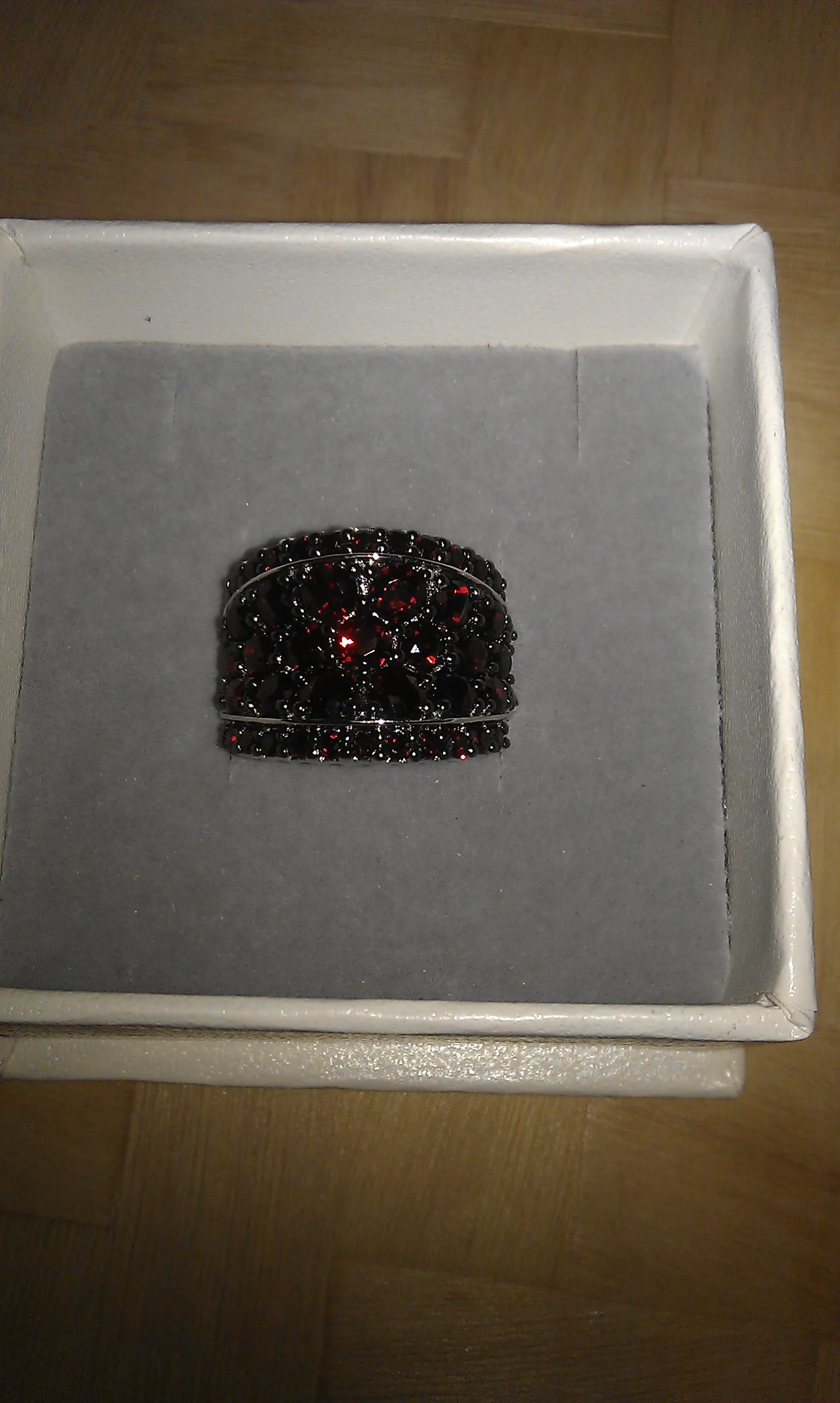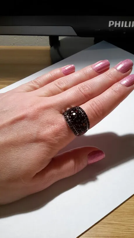 Кольцо очень понравилось. Полностью соответствует фото продавца. Вживую еще красивее) Камни все время сверкают своими гранями, красота! Кольцо выполнено аккуратно, очень красивая изнанка, в носке удобное. Доставка заняла три недели. Кольцо упаковано в фирменную коробку. В подарок продавец положил салфетку для ухода и браслет из жемчуга, спасибо.