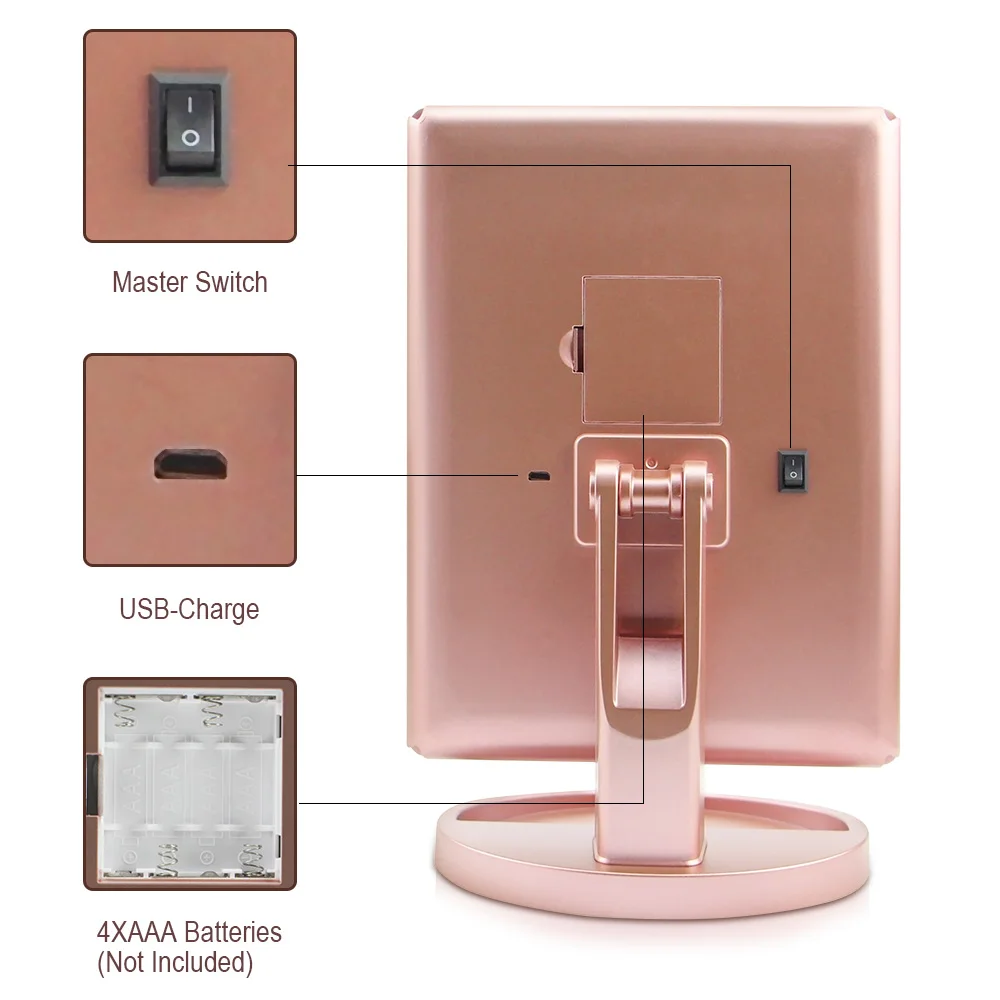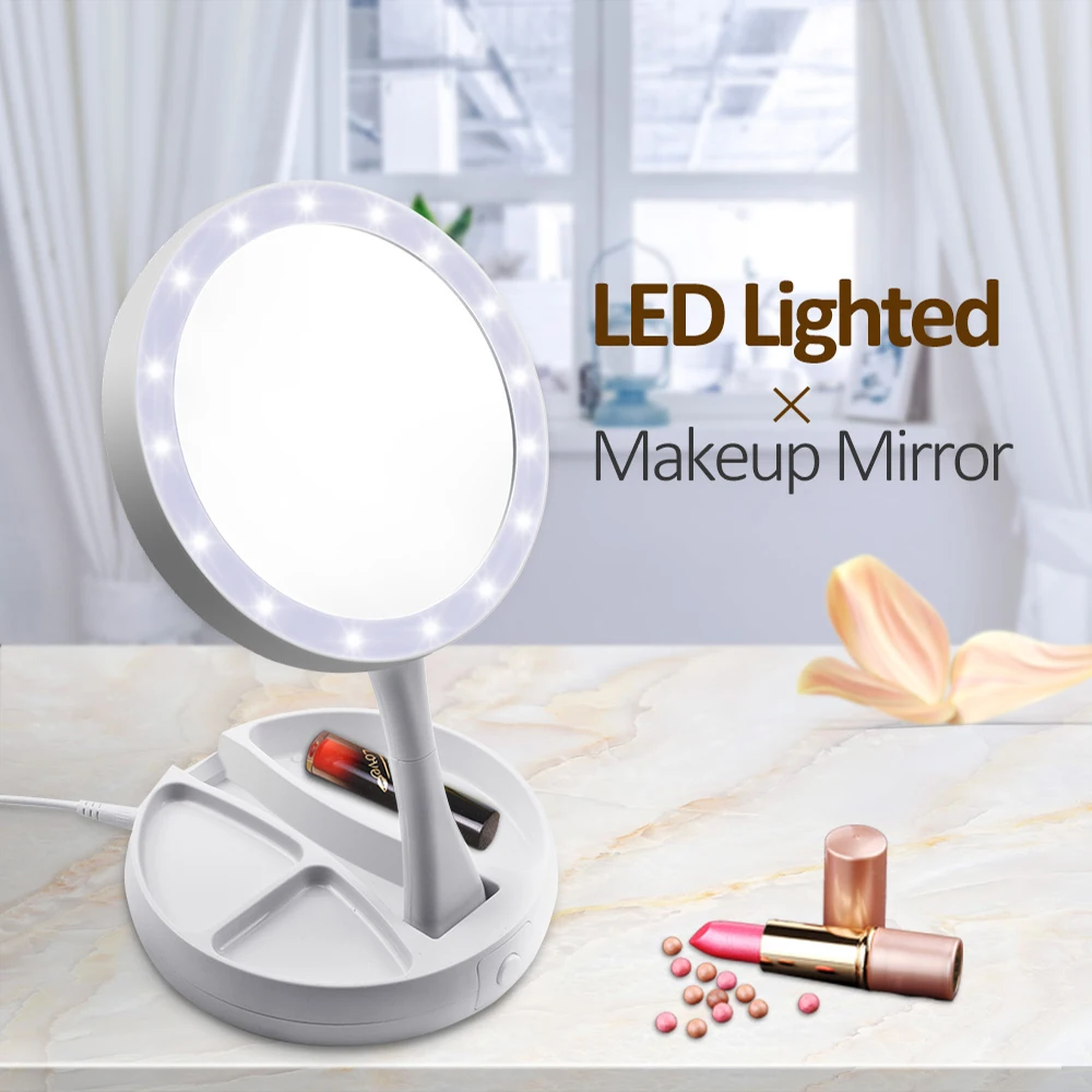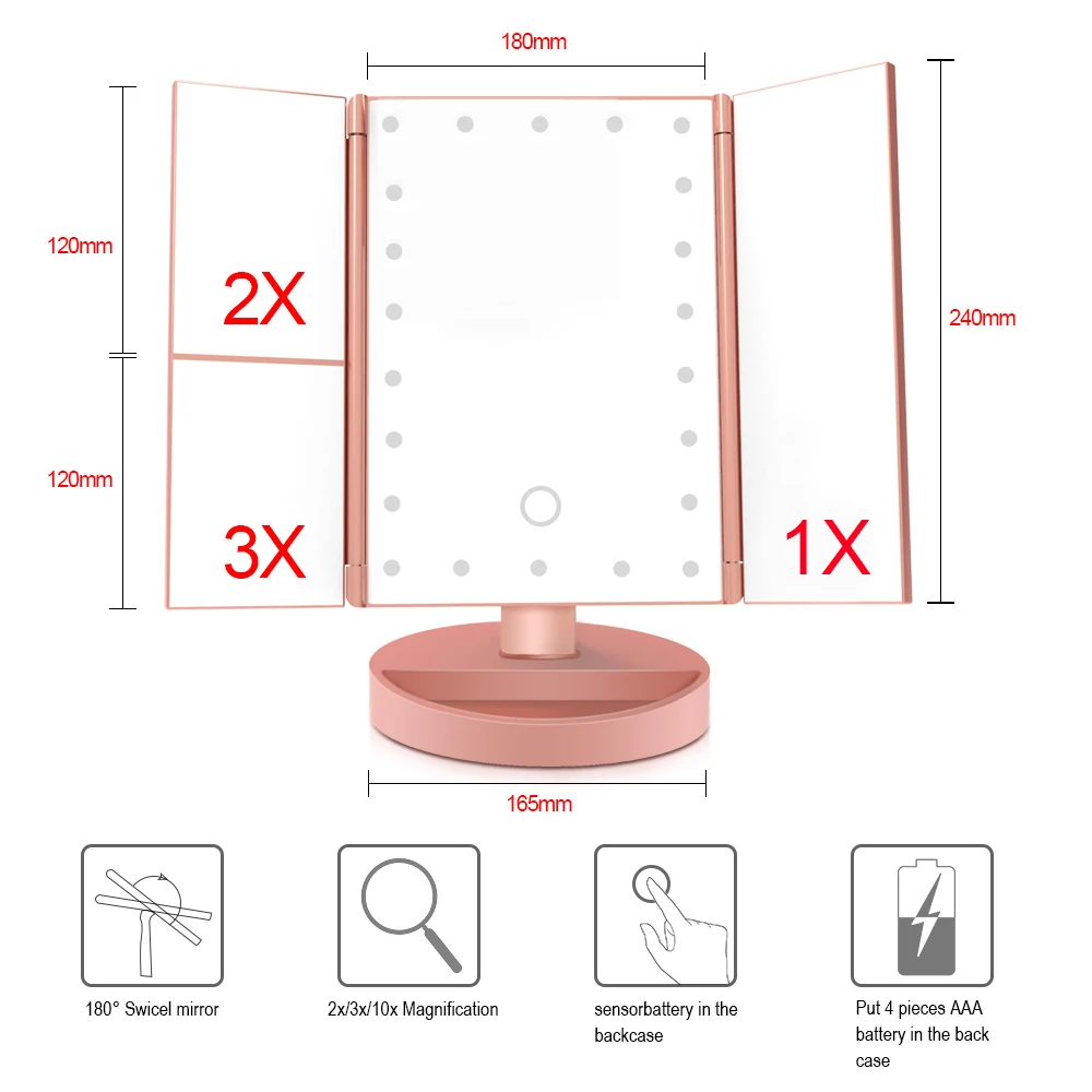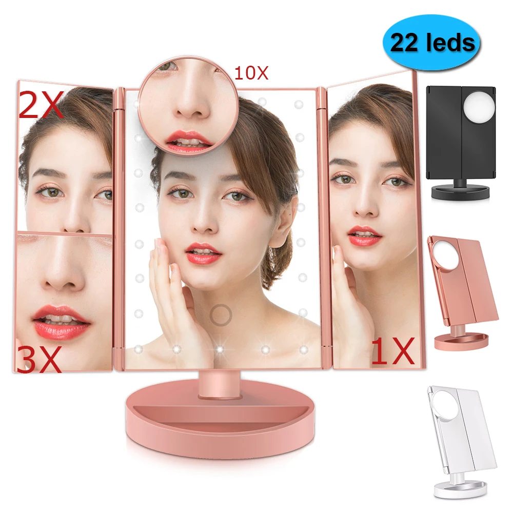Оборудованное зеркало для макияжа, 22 светодиода, сенсорный экран, настольный макияж, 1X/2X/3X/10X, увеличительное зеркало, Vanity 3, складное регулируемое зеркало