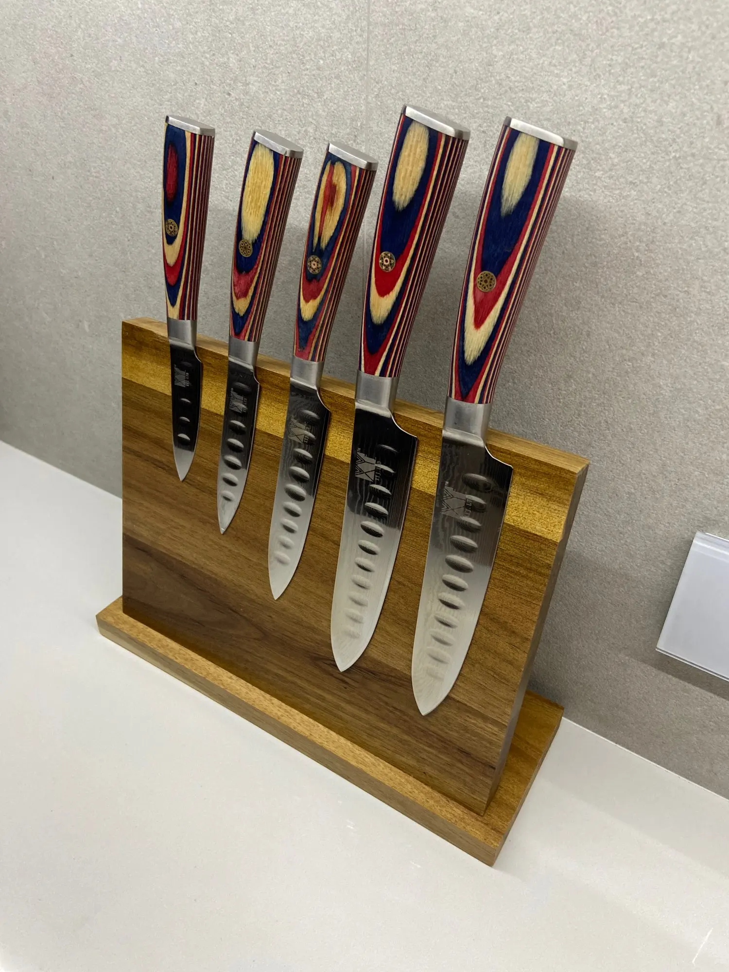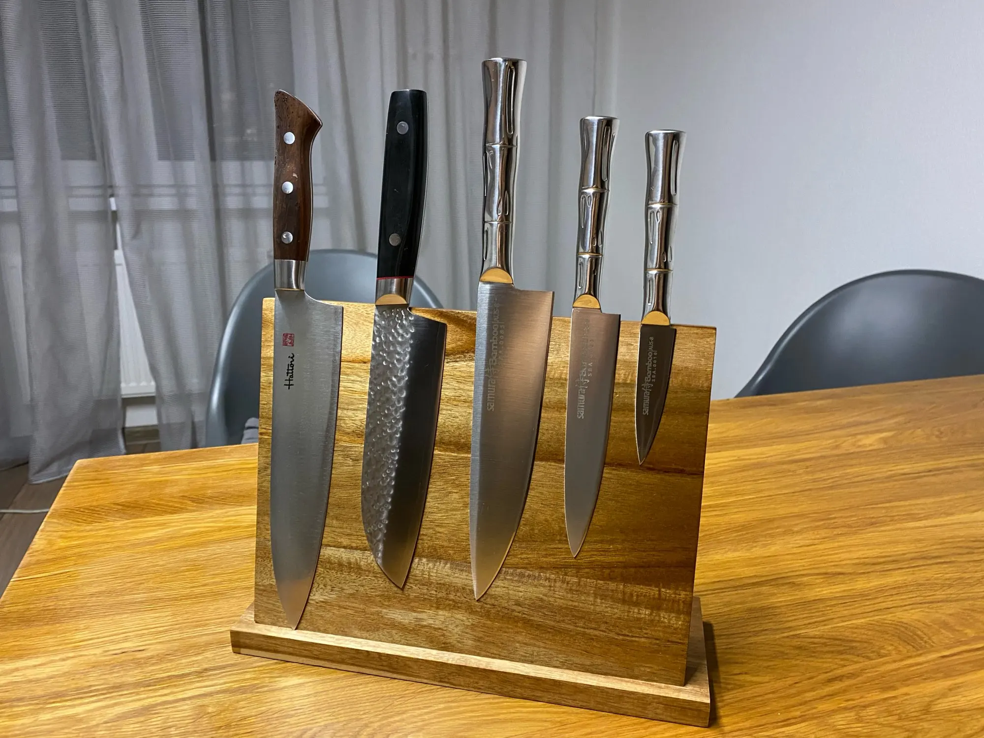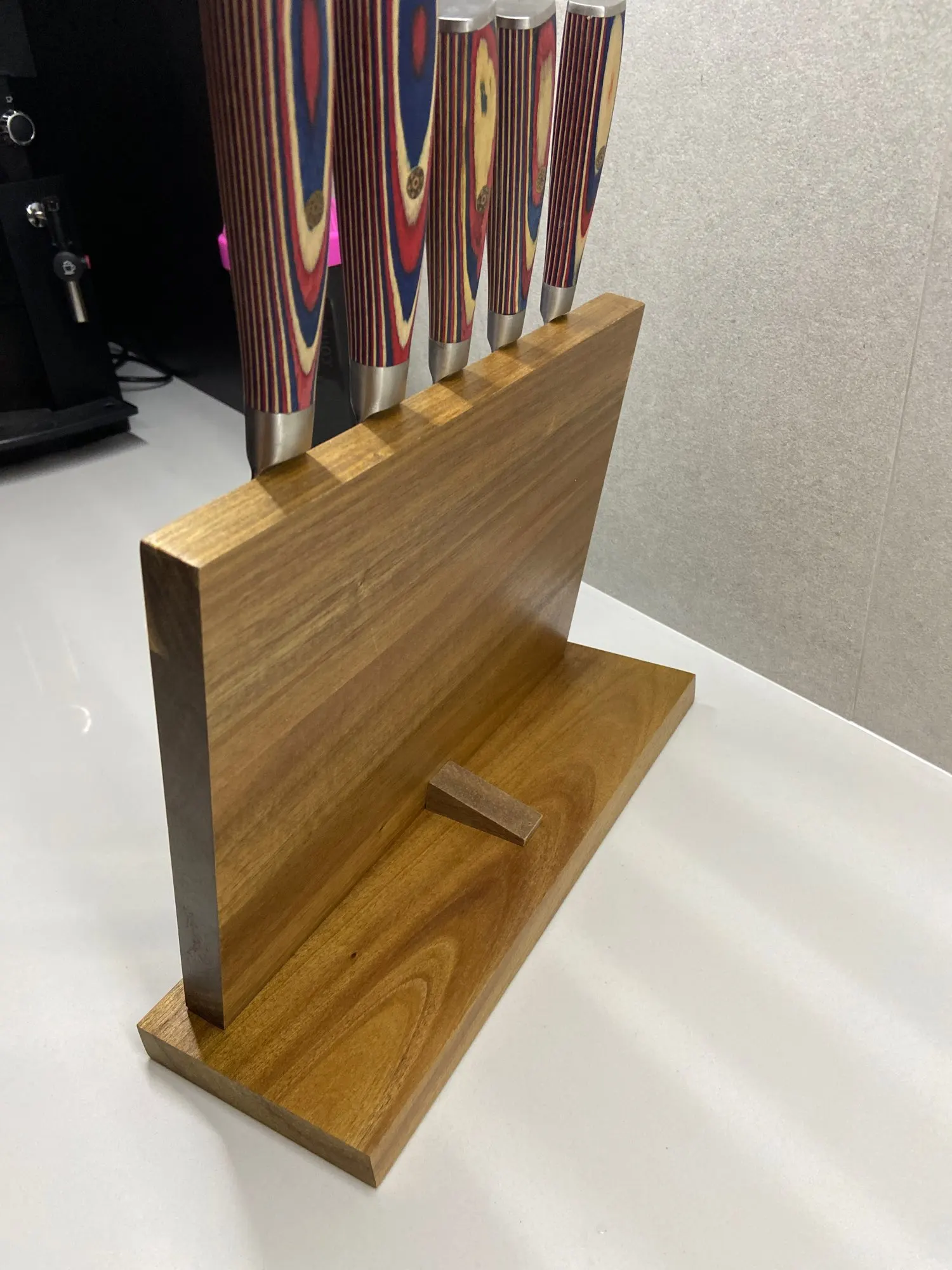 Выглядит очень красиво, и магниты расположены довольно равномерно, поэтому ножи хорошо прилипают к ним.