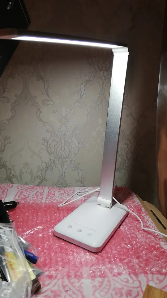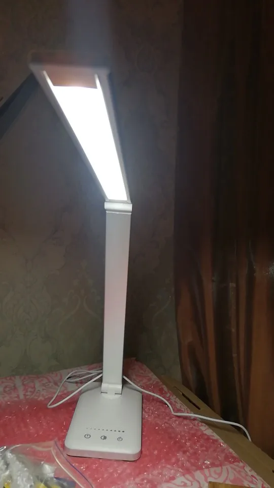 Отличное качество. Он прибыл в течение 15 дней. Лампа весит немного, что придает ей качество. Низ, стоячий, пластиковый, остальное металлическое и выглядит отлично. Освещает очень хорошо, у него довольно много видов света, чтобы не повредить ваши глаза. От теплого до холодного. Он оснащен таймером и usb, чтобы зарядить все, что вы хотите. Вы можете регулировать интенсивность света. При покупке 10 штук. Идеально подходит для рабочего стола.