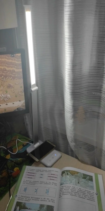 Доставка ИМЛ, как по мне - ужасная контора. сама лампа хорошая, брал ребенку учить уроки. фото не совсем точно передает яркость свечения, на самом деле хорошо светит. яркость регулируется как по интенсивности, так и по спектру (холодный белый, розовый какой-то, жёлтый и т.д., всего 5 режимов). есть таймер с 2-мя режимами (используем как ночник). крутится как сама лампа так и основание, так что можно под разными углами выставить. работает ТОЛЬКО от шнура, учтите. есть гнездо для зарядки телефона. покупкой доволен, рекомендую