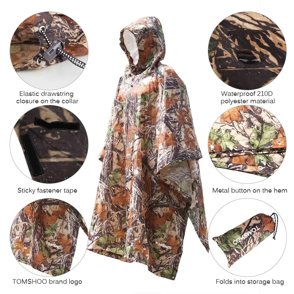 TOMSHOO Открытый пончо рюкзак дождевик с капюшоном водонепроницаемая палатка дождевик для кемпинга пешего туризма велоспорта