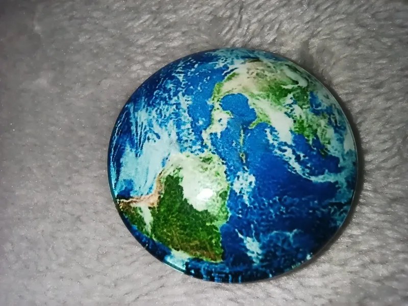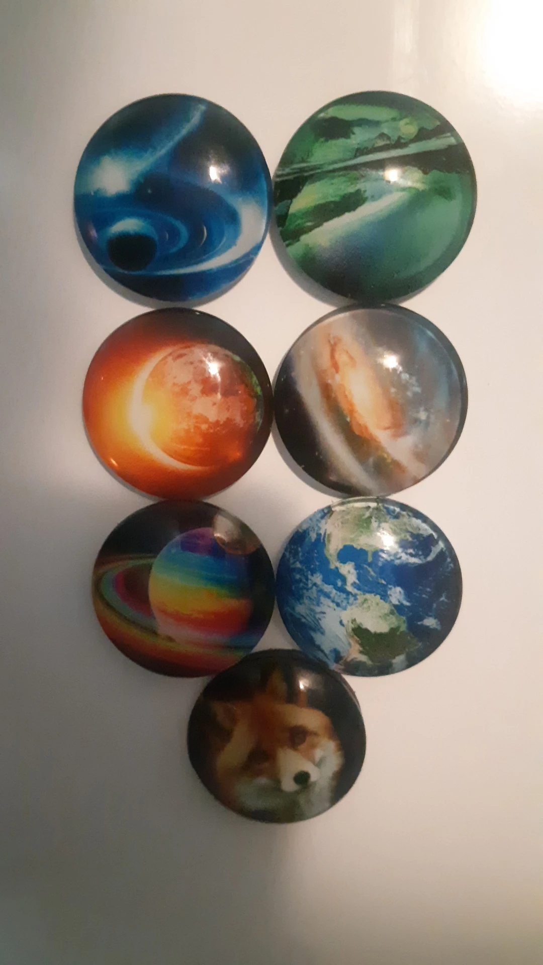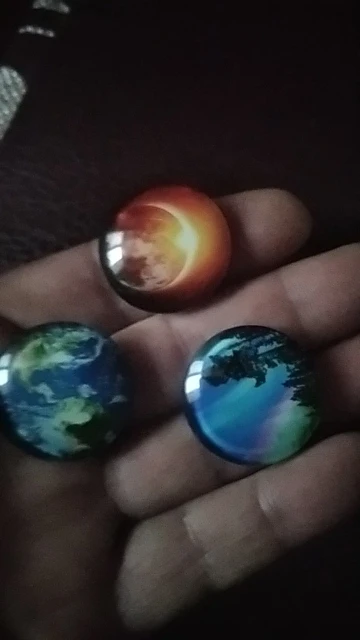 На магните с землей видно с краю 2 блика небольших на черном фоне. Возможно картинка повреждена или воздух при наклейки остался. Видно тока вблизи, так что нормально. Но на других такого нет.