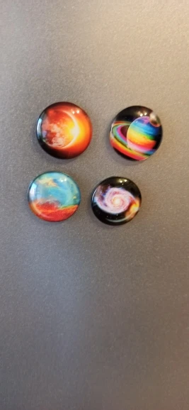 Очень красивые магнитики! Я заказывал Землю и луну. В темноте светятся зеленоватым свечением обе. Дети в восторге.