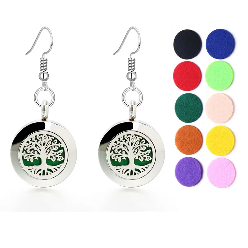 Серьги из нержавеющей стали с изображением дерева жизни для женщин, ювелирные изделия, диффузор эфирного масла, медальон для духов, подвеска, ароматические серьги