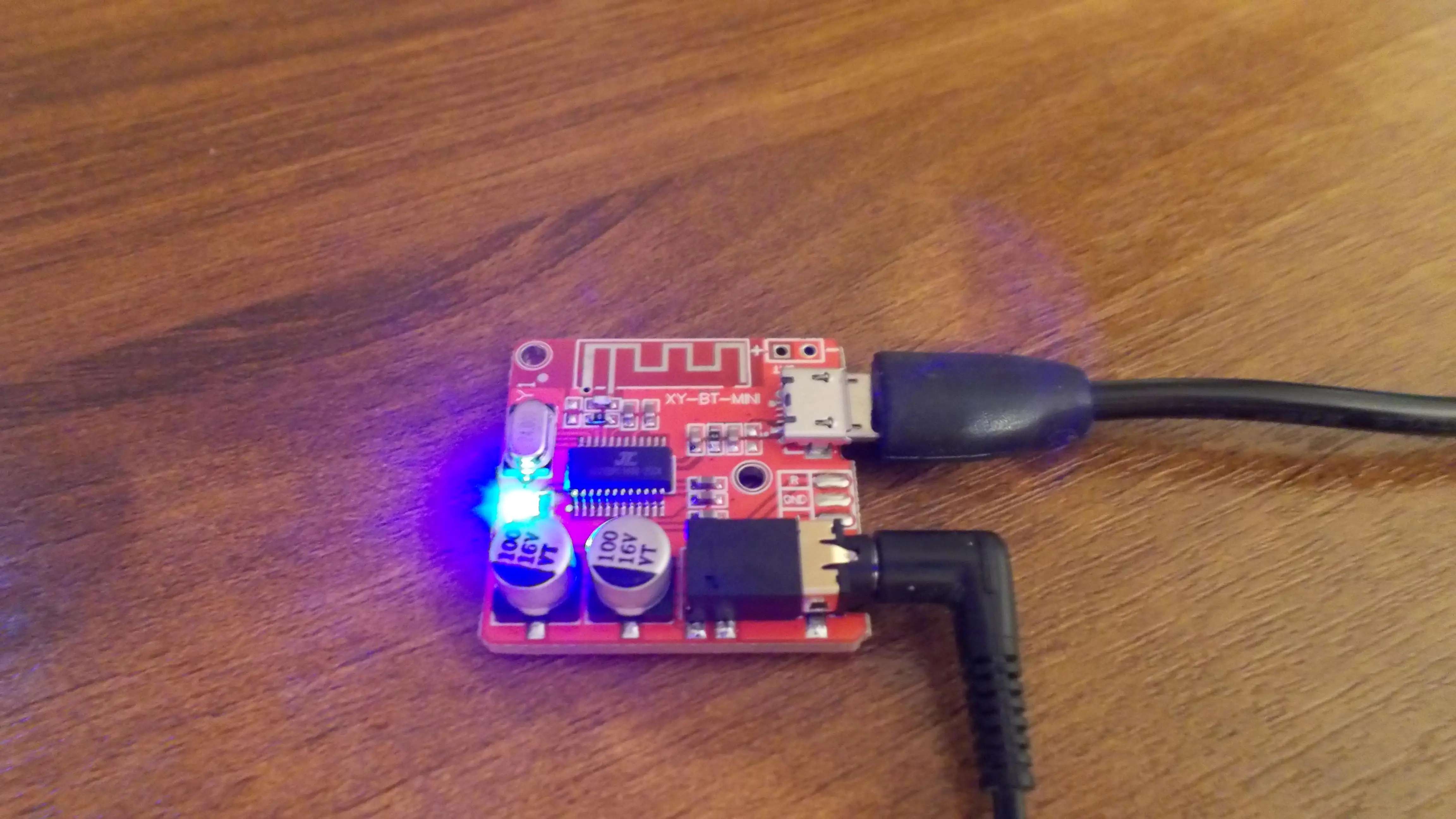 Работает. Звук всё таки не так хорош, когда подключаешь наушники напрямую к телефону (смартфону). При подключении от повербанка присутствует постоянный фоновый шум. При подключении от зарядки для телефона (1А) фоновый шум пропадает, но при прослушивании музыки всё равно какие-то небольшие шумы и искажения пробиваются. Лучше взять другой модуль, который блютуз 5.0 (на 5 фотке). У него звук таки получше.