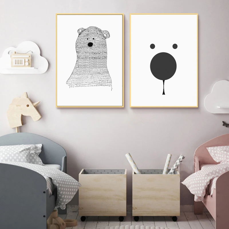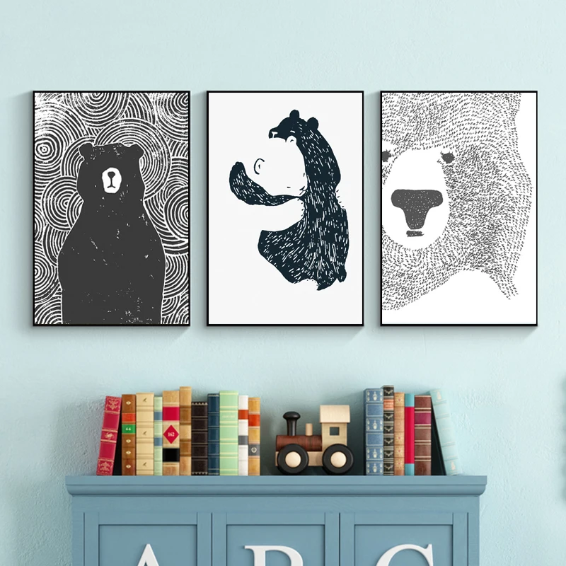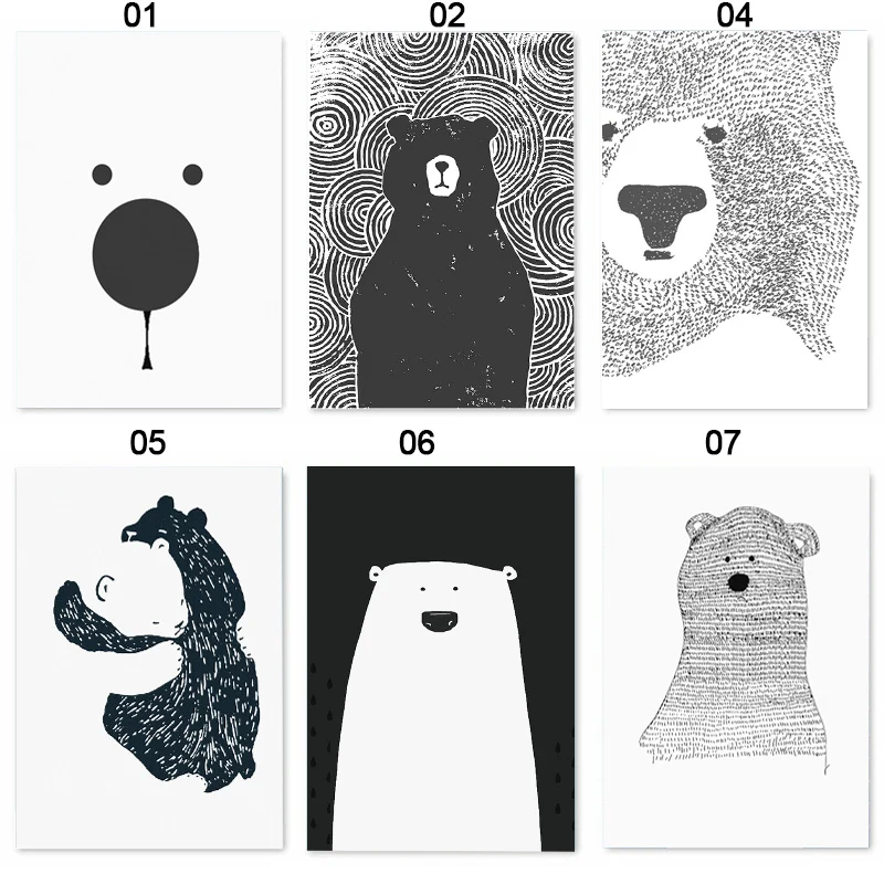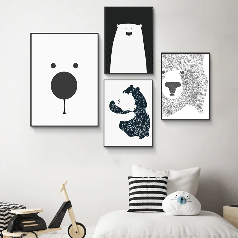 Мультфильм черный и белый полярный медведь животное холст постеры и принты минималистичный настенное искусство картина скандинавский дом Детская комната украшение