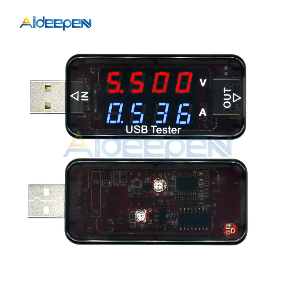 Он может измерять ток и напряжение оборудования источника питания с usb-портом.Подключи и работай, дополнительный источник питания не требуется.Напряжение и ток будут отображаться циркулярно.Маленький размер, легко и удобно носить с собой.Характеристики: