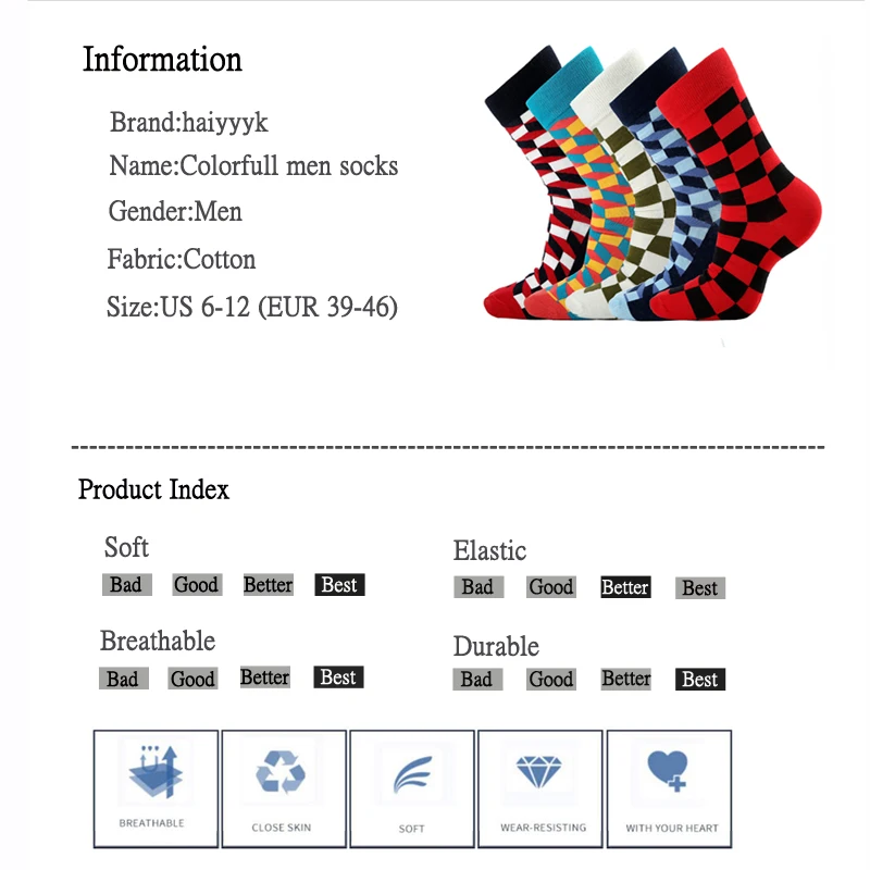 5 партЛот Новые повседневные мужские хлопковые носки Модные забавные цветные клетчатые дизайнерские носки счастливое деловечерние платье хлопковые мужские носки
