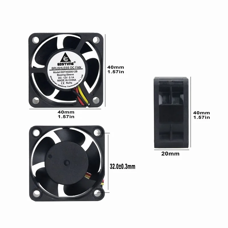 Gdstime 40x40x20 мм 3P Вентилятор охлаждения DC 12V