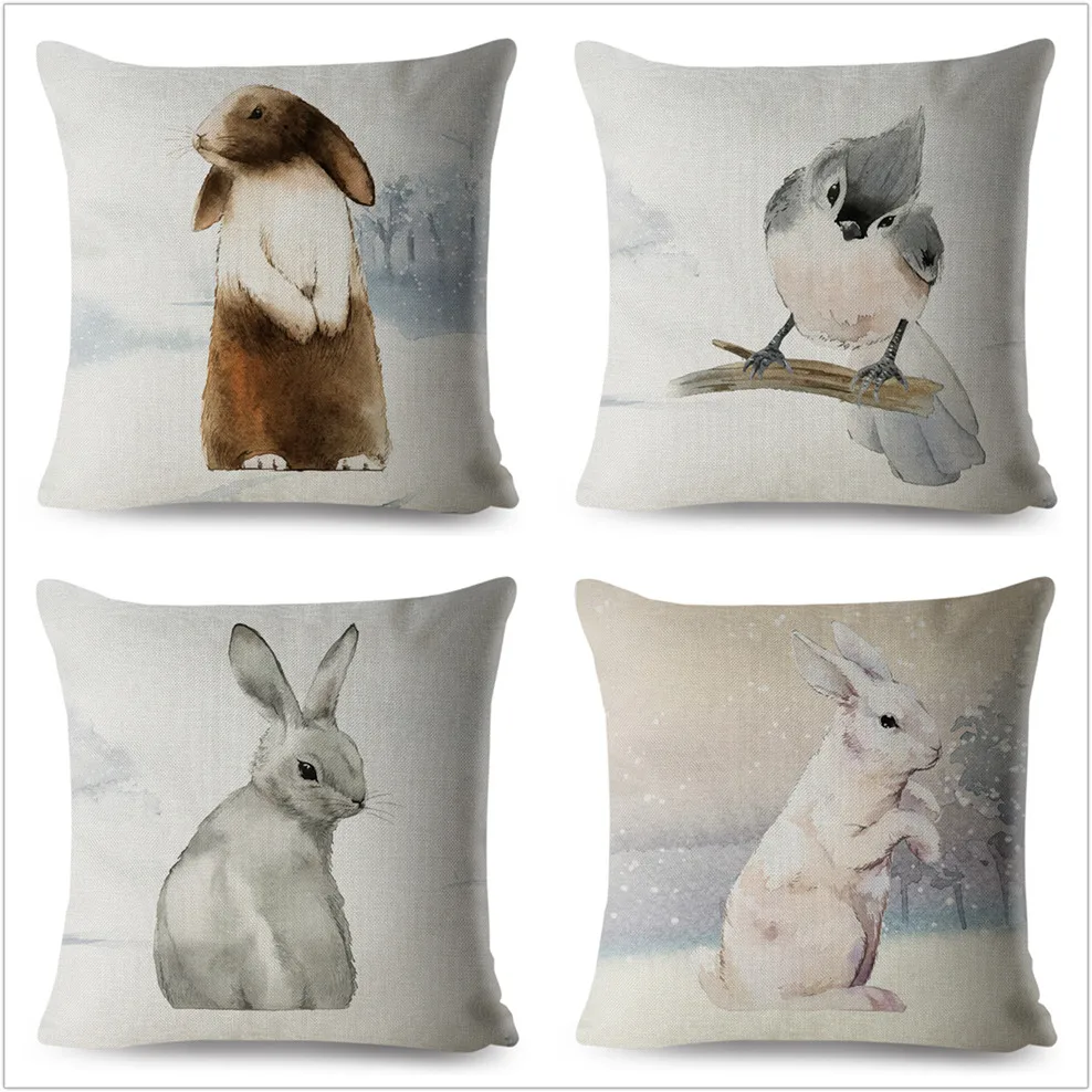 Акварельная краска зимний чехол для подушки с изображением животных 45*45 см Квадратные наволочки для подушки льняные наволочки для дивана наволочка для домашнего декора