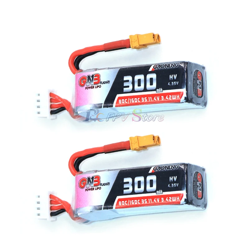 2 шт., батарея Gaoneng GNB 300 мАч 11,4 в 80C160C HV для липосакторов с разъемом XT30 для BETAFPV, бета75x, 3S, бета65x, 2S, Whoop дронов