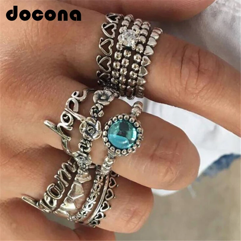 Набор женских колец Docona, золотистые и серебристые кольца геометрической формы