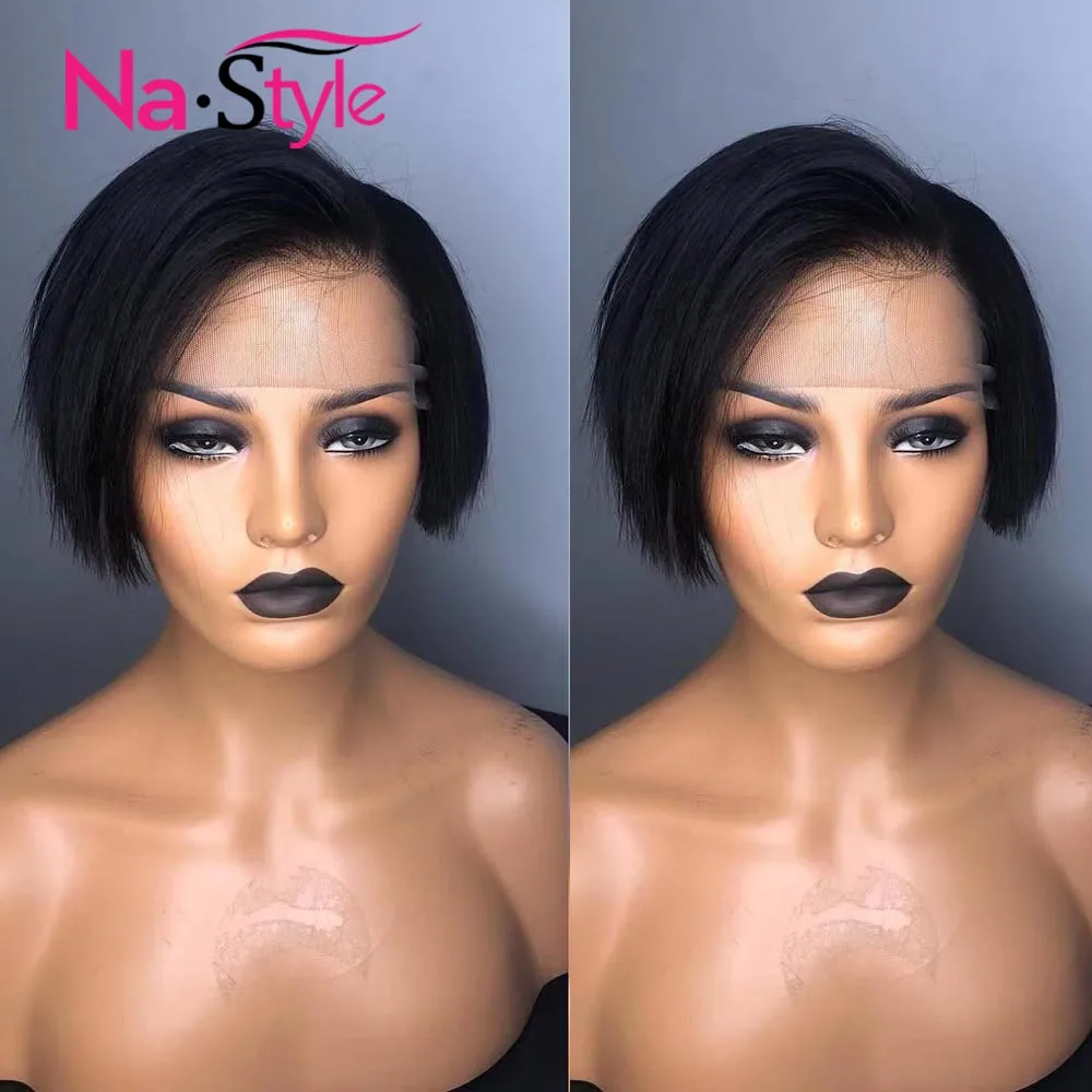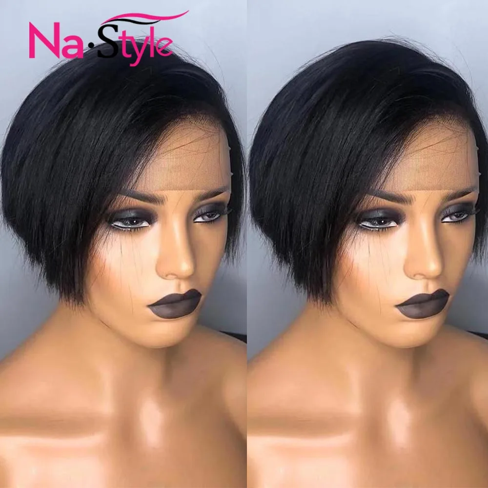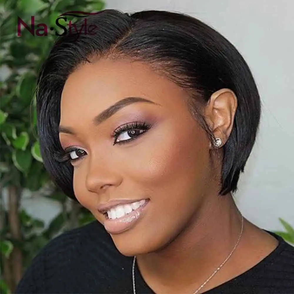 Стрижка Пикси парик Синтетические волосы на кружеве парики короткие боб парик 13x4 Синтетические волосы на кружеве человеческих волос парики для чернокожих Для женщин предварительно кружевной парик бразильский