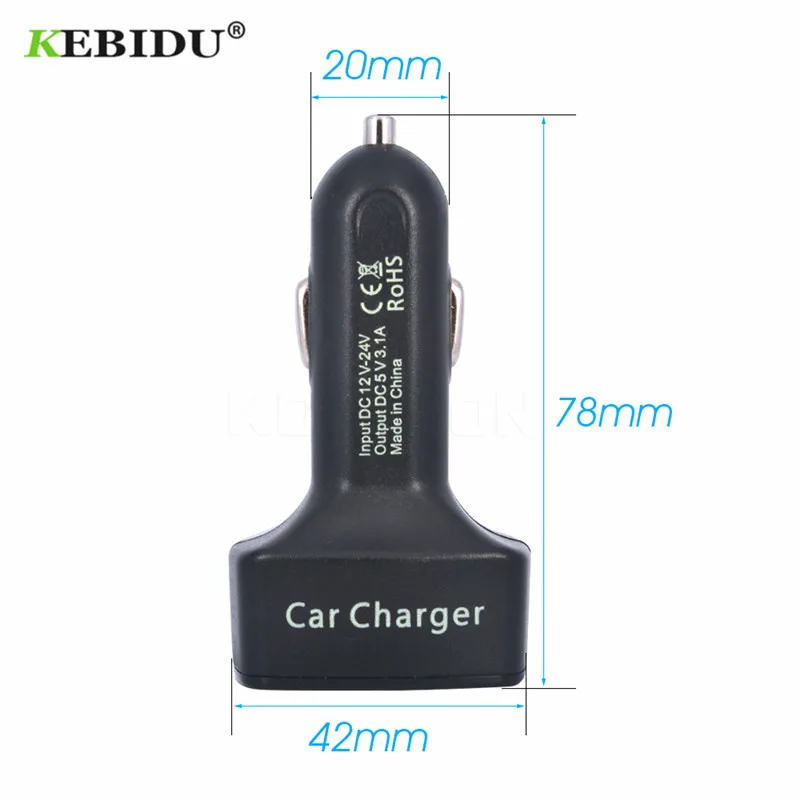 Автомобильное зарядное устройство KEBIDU 4 в 1 с двумя USB-портами, 5 В, 3,1 А