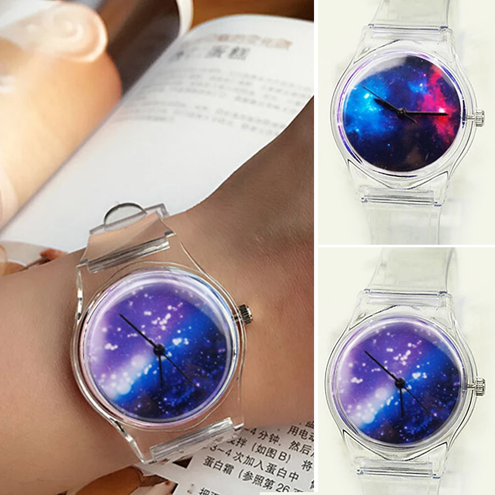 Высококачественные Кристальные часы с мультяшным рисунком, Новые прозрачные силиконовые классические электронные часы с ремешком для студенток, женские наручные часы