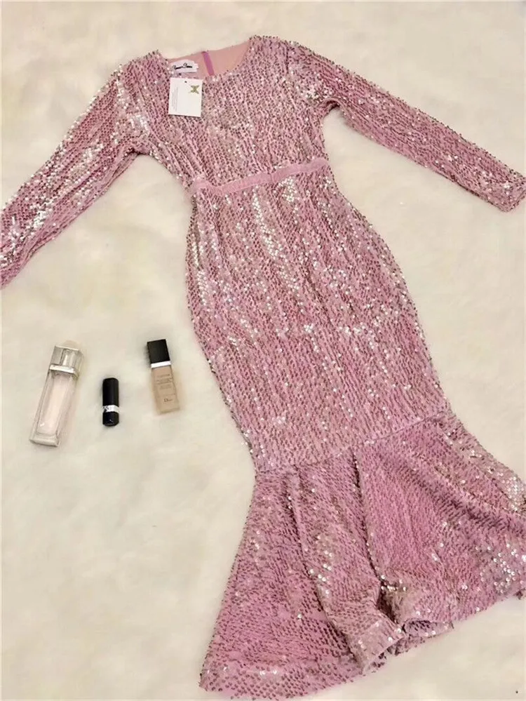 Женское блестящее платье с длинным рукавом, обтягивающие платья, Подиумные винтажные вечерние платья Русалочки, сексуальные платья миди, лето 2019