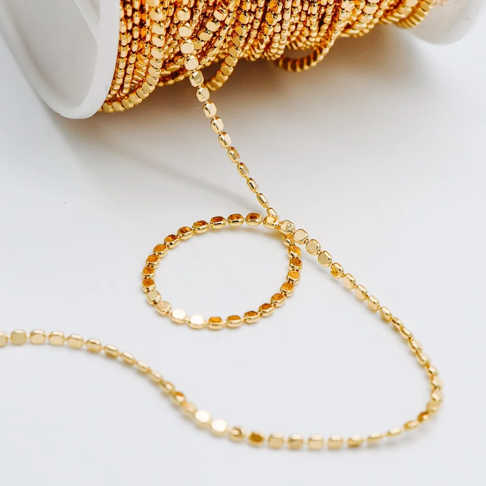 Позолоченные Латунные Цепи из бисера 2 мм, цепочка для поделок, для изготовления ожерелий, браслетов, ювелирных изделий своими руками (# LK-198) 1 метр = 3,3 фута