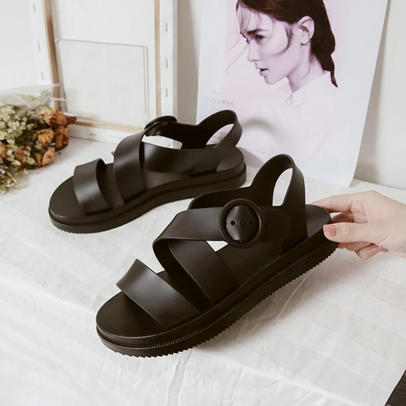 Женские сандалии, летняя однотонная Удобная пляжная обувь, массивные сандалии для женщин, нескользящая обувь, 2019