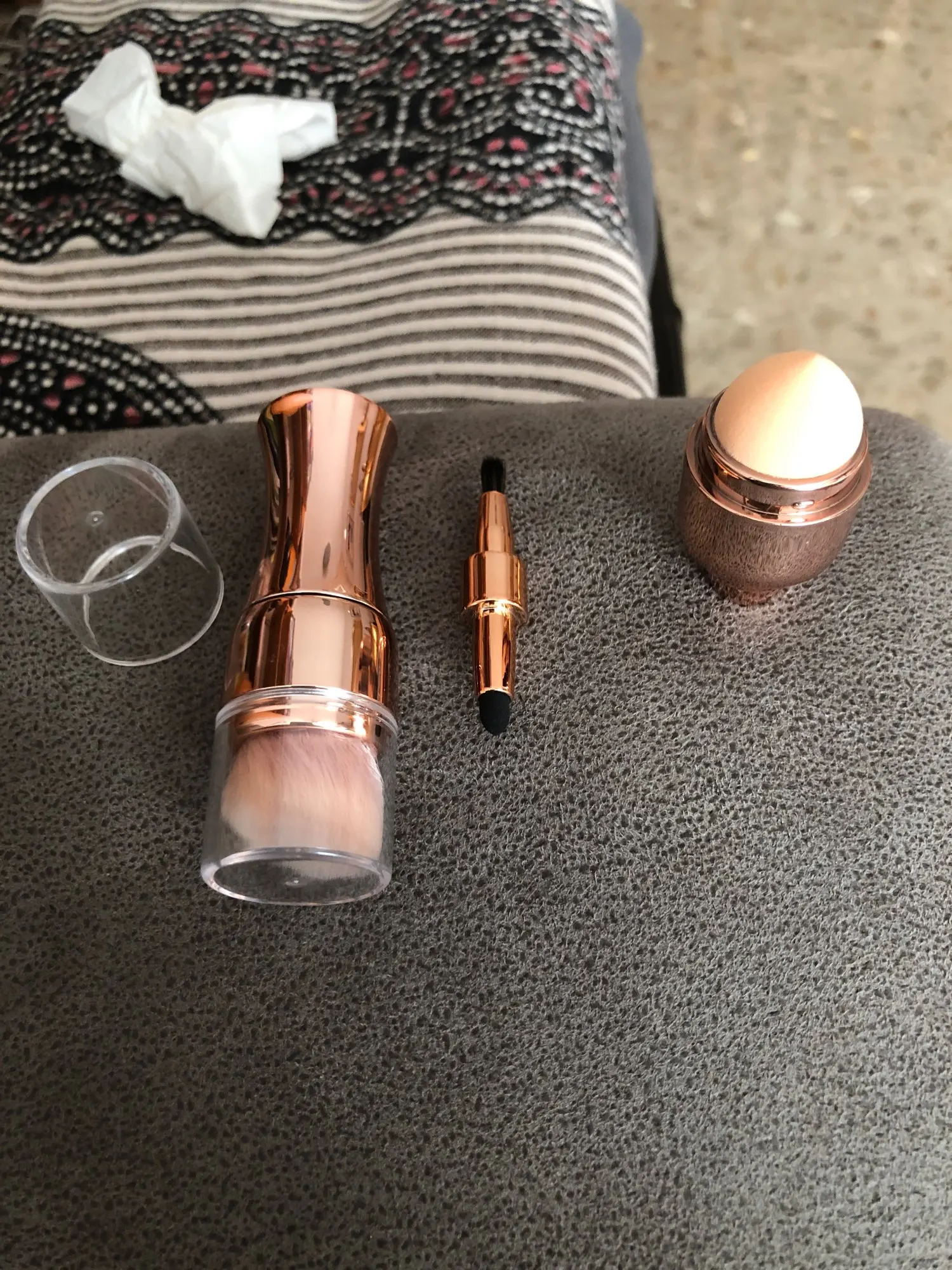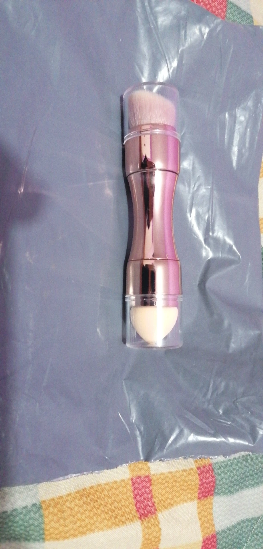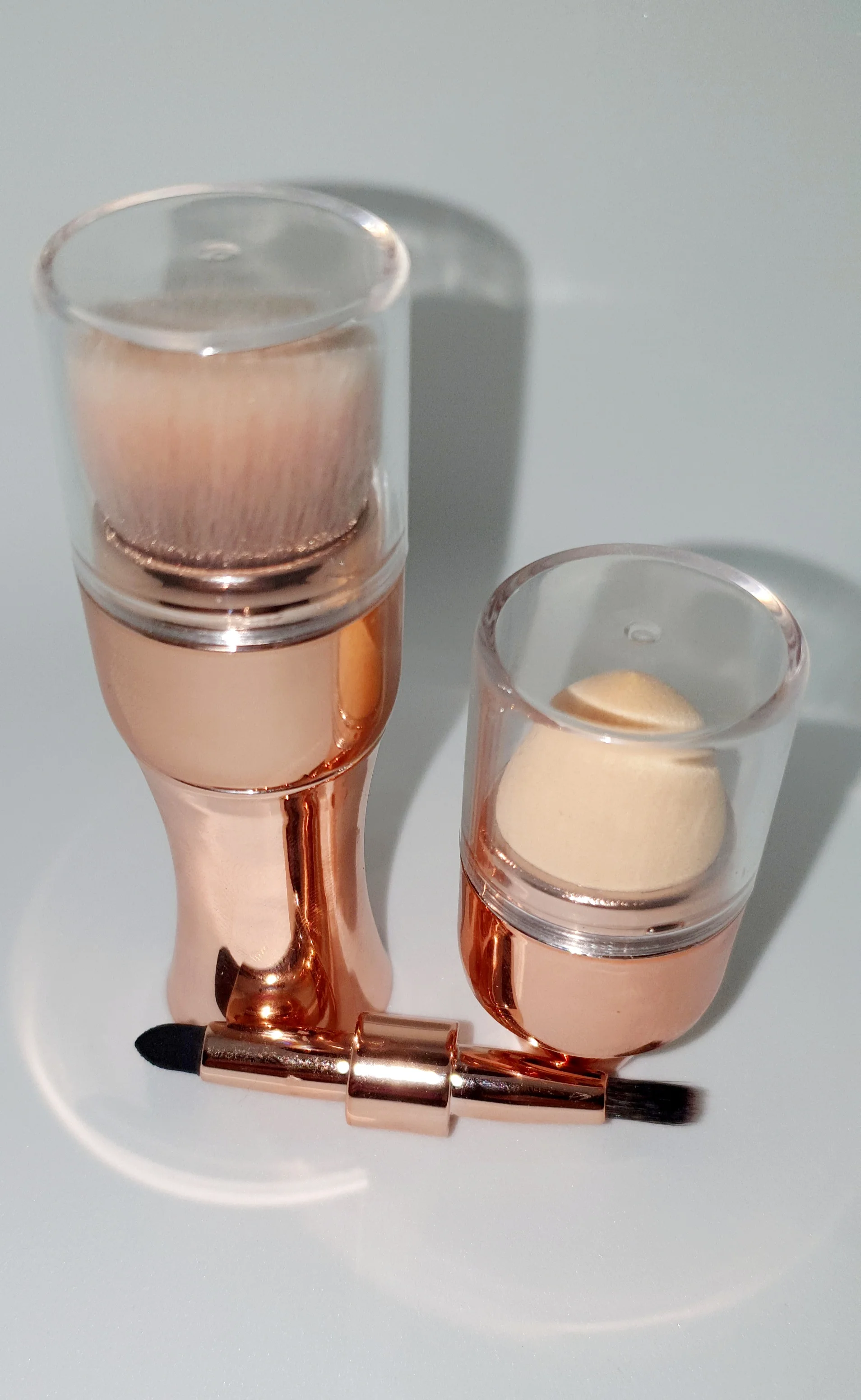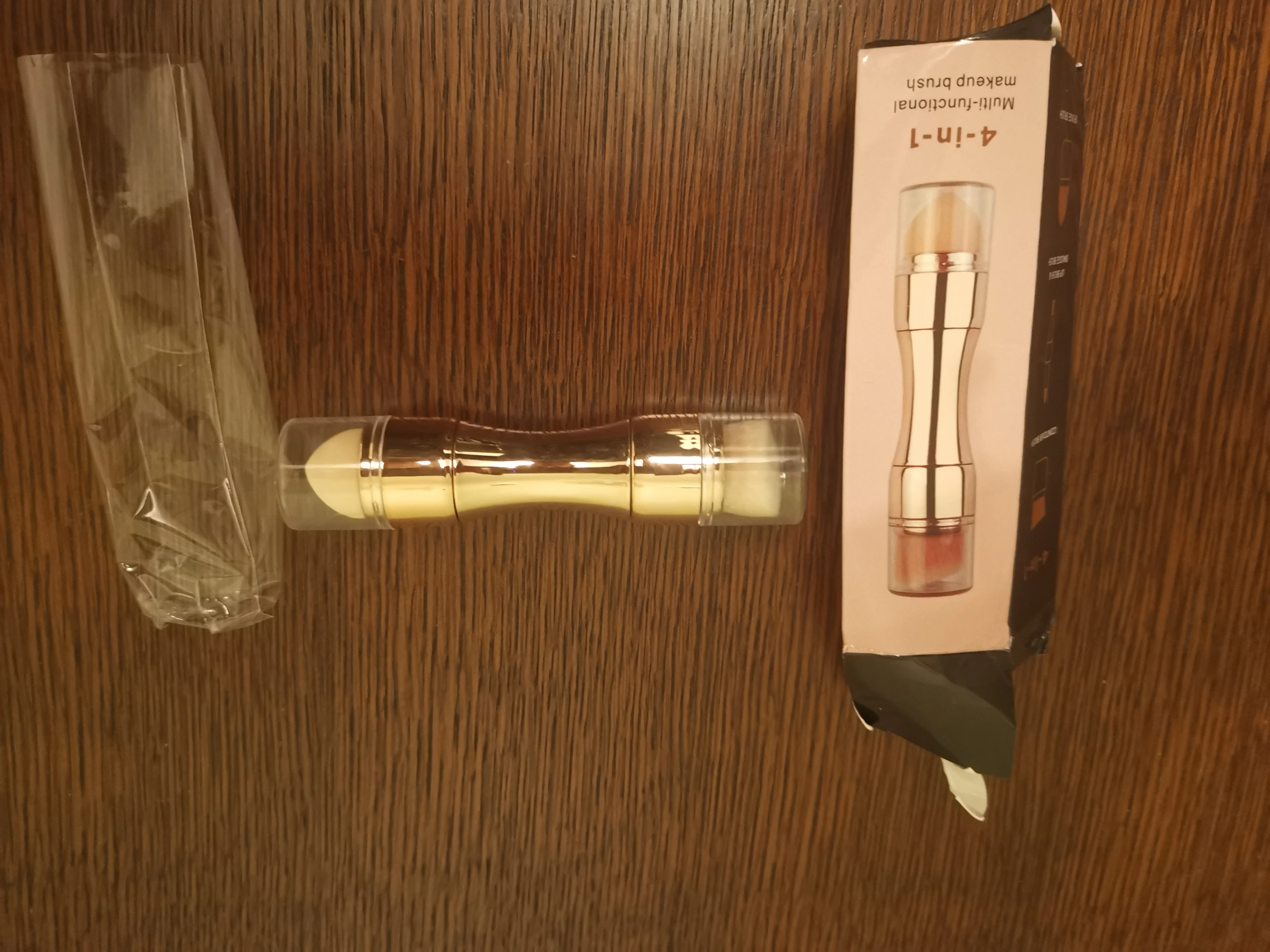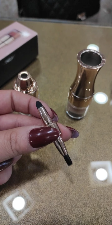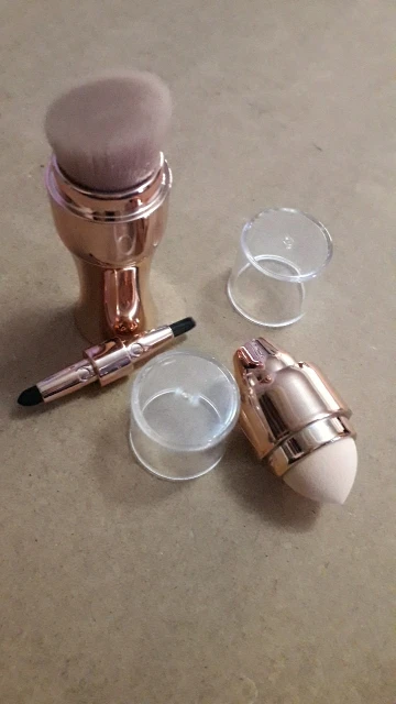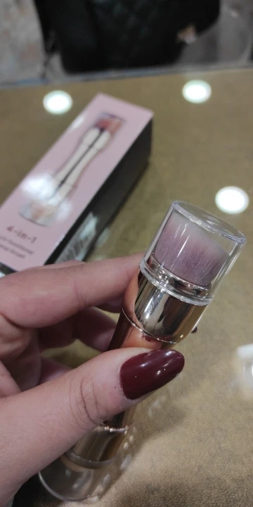 Очень хорошая кисточка,небольшая,в сумочке самое оно,4 в одном. Единственный минус-кисточку с одной стороны приходится вытягивать с большим трудом,но,думаю,это временно.