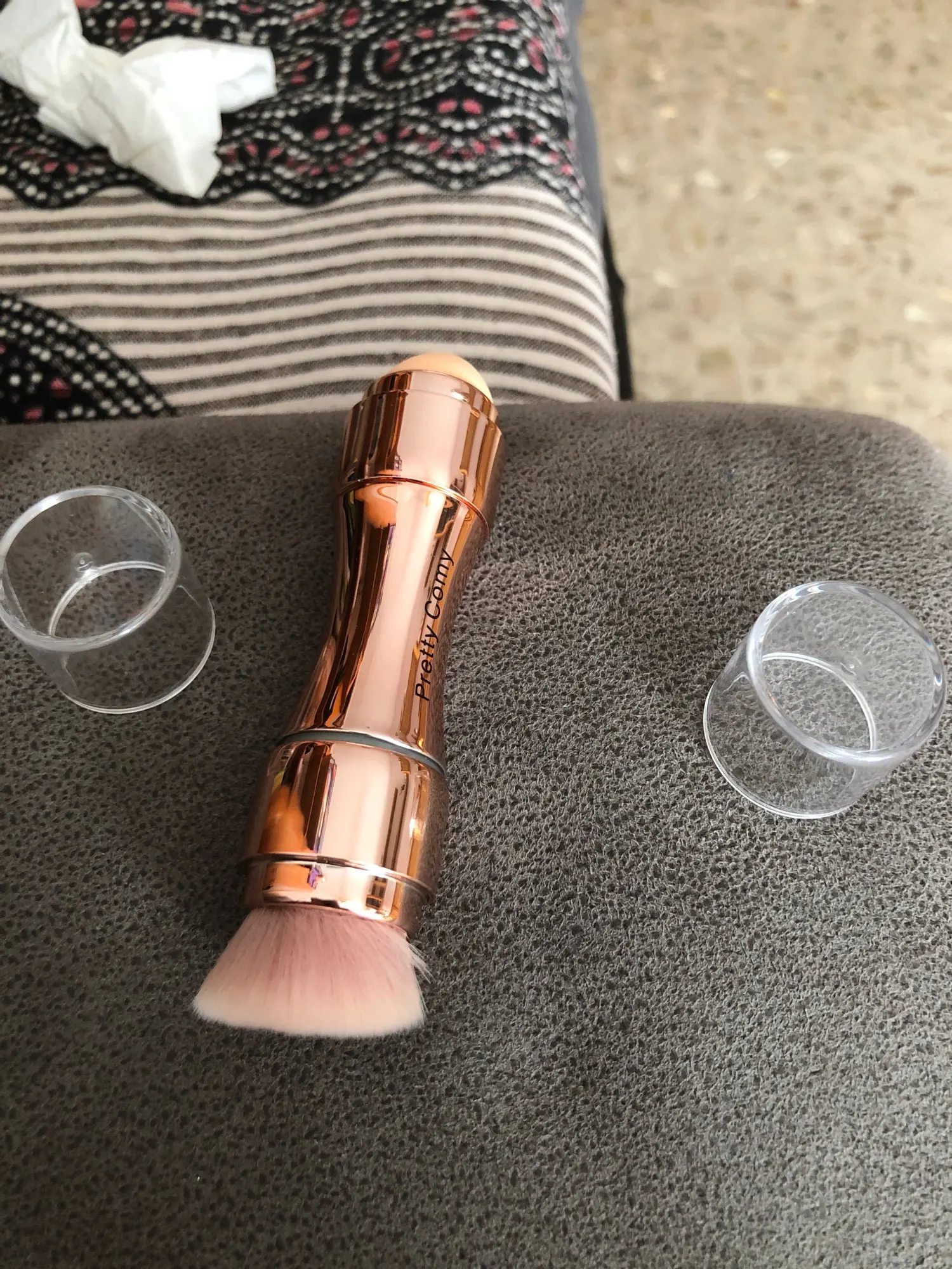 кисть очень хорошего качества. две стороны рабочие с колпачками от пыли . классная кисть . рекомендую. пришёл очень быстро заказ.