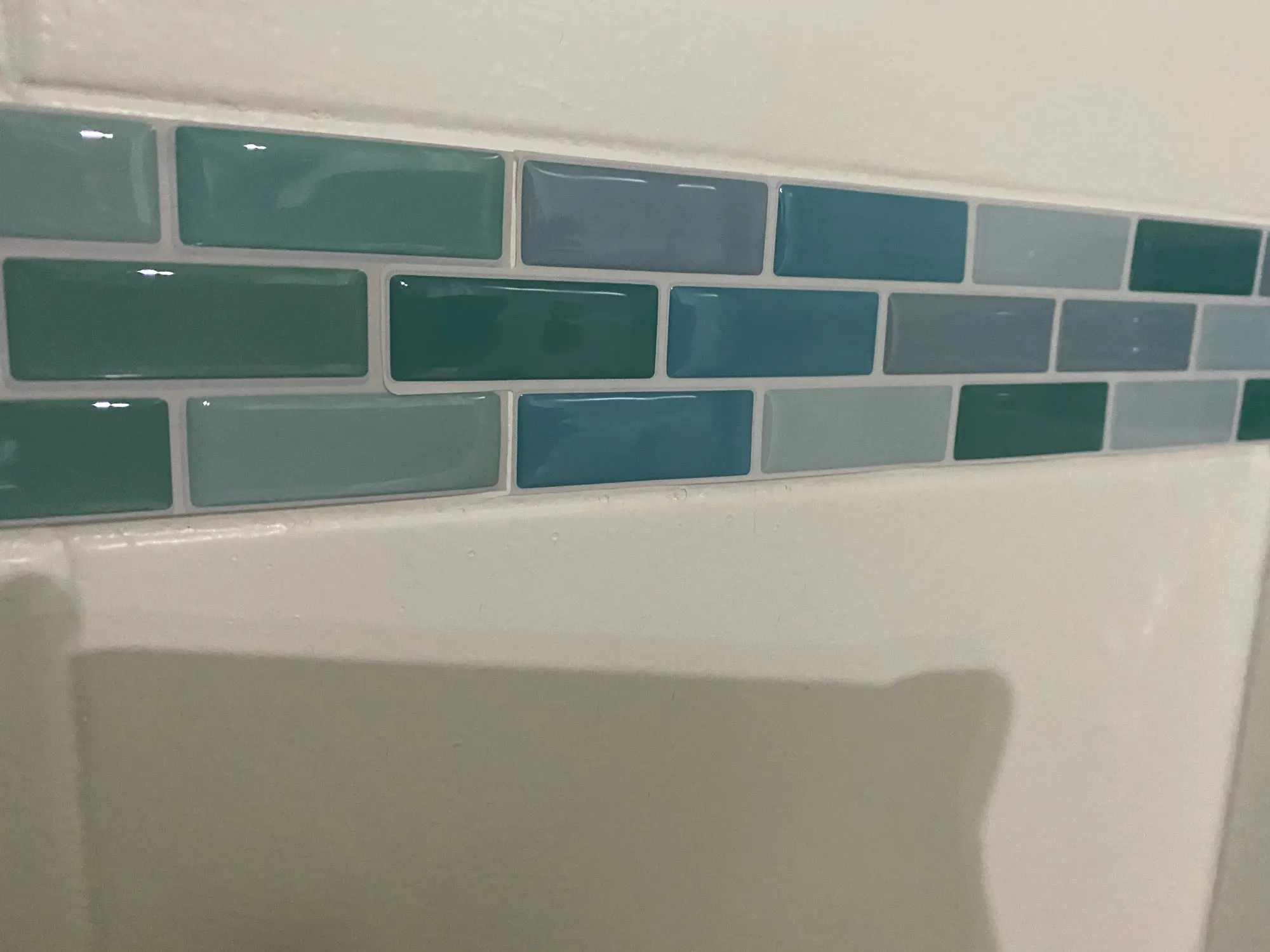 Пришел в течение одного месяца. Выглядит хорошо по сравнению с другим продуктом (от другого продавца). Очень легко устанавливается. Я не знаю, как долго он держится на стене плитки, но для изменения цвета ванной на некоторое время это хорошо. Одна фотография с плиткой, которую я наконец не использовал (от другого продавца).