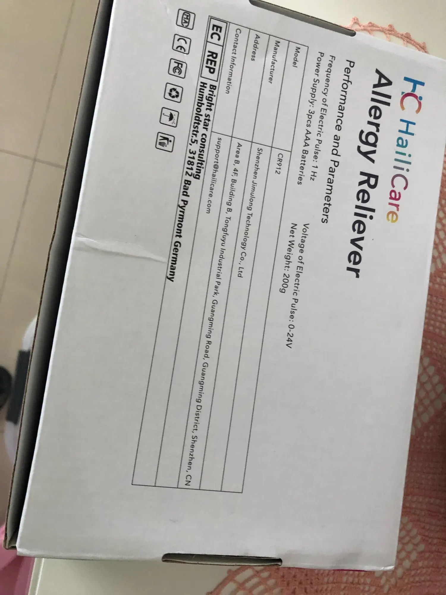 Прибыла в Бразилию в течение 20 дней, никаких сборов. Но плохой продукт. Лазер очень слабый и не работает для ринита. Купил в Бразилии лучше, Oba laser (фото прилагается). Больше стоит, хотя и дороже, и используйте ворс CR2032, меняйте каждую неделю. Но очень хорошо.