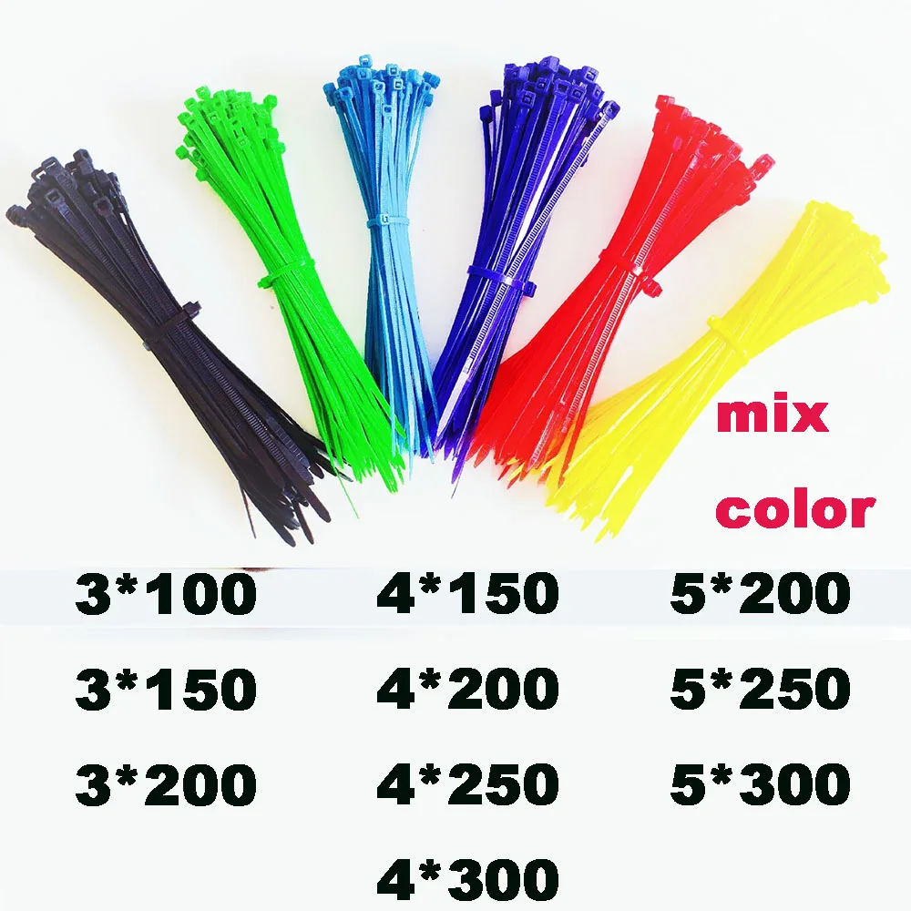 Самоблокирующиеся Кабельные стяжки, пластиковые нейлоновые стяжки, 3*100, 3*200, разные цвета, 100 шт., нейлоновые стяжки, петля для крепления кабеля, Органайзер