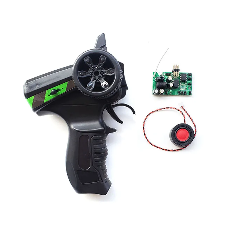 Спецификация:Цвет: черный (как показано на рисунке)Материал: пластикРазмер пульта дистанционного управления: 11x7.8x18.5смПлата приемника: 2.8x4.9смРожок: d2.8 см * h0.9см