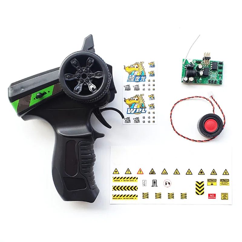 Посылка входит:1 x оригинальный 4-канальный пульт дистанционного управления WPL1 x плата приемника1 x звуковой сигнал/динамик2 * наклейка1 * Инструкция по эксплуатации