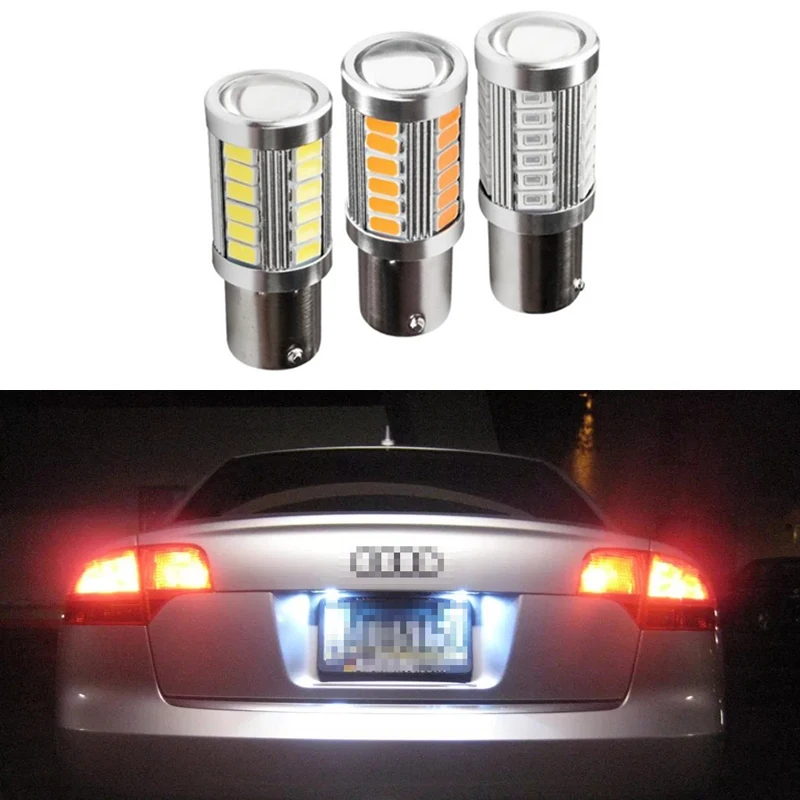 2 шт. светодиодный автомобильный тормозной светильник, задний противотуманный фонарь COB DRL, светодиодный светильник с поворотным сигналом, лампа 1156 1157 P21W BA15S 33 SMD 5630 5730