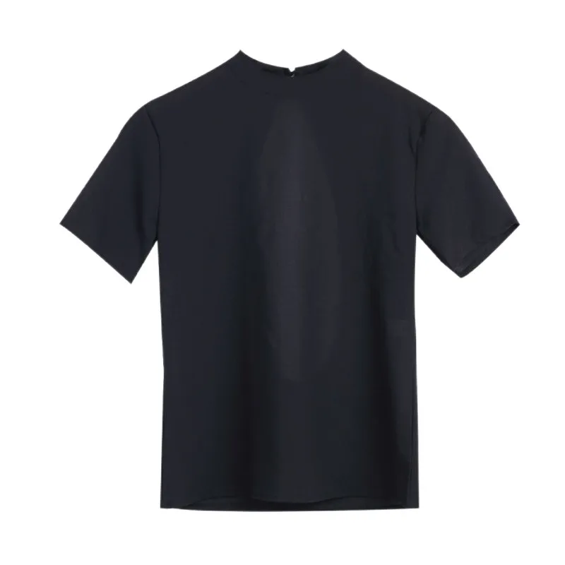 Женская хлопковая рубашка с коротким рукавом и открытой спиной