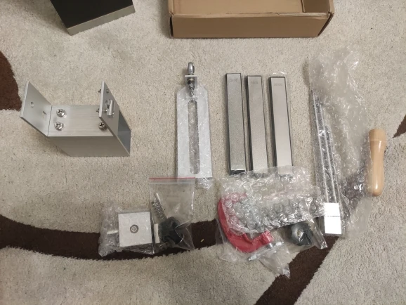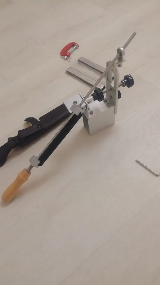 Быстрая доставка (4 дня). Собрал по фотографиям из отзывов, т.к. инструкции нет. Попробовал наточить кухонный нож. Получилось неплохо для первого раза. Продавца рекомендую.