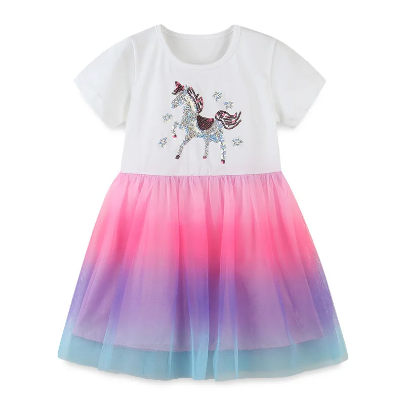 Костюм единорога для девочек, лето 2021, детское хлопковое платье с радужным единорогом, повседневные платья для маленьких девочек, детская одежда