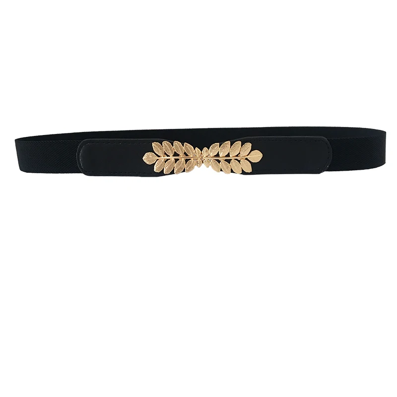 Ремень женский эластичный из ткани, с металлической пряжкой и золотыми листьями
