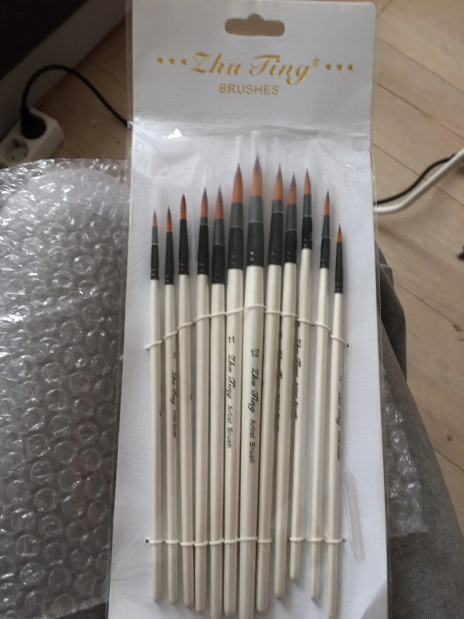 Заказал 4 различных комплекта, которые все прибыли вместе хорошо упакованы и защищены. Доставка была медленной и заняла более 7 недель в Японию. Щетинки на кисти мягкие. Есть несколько дефектов, некоторые из маленьких кистей (размеры 1-3) выглядят одинаковыми по размеру, и некоторые из них не очень хорошо держат форму. Однако они, вероятно, поправимы и имеют хорошее соотношение цены и качества