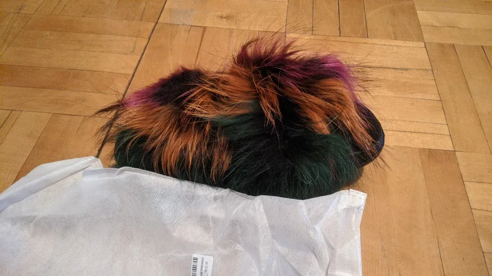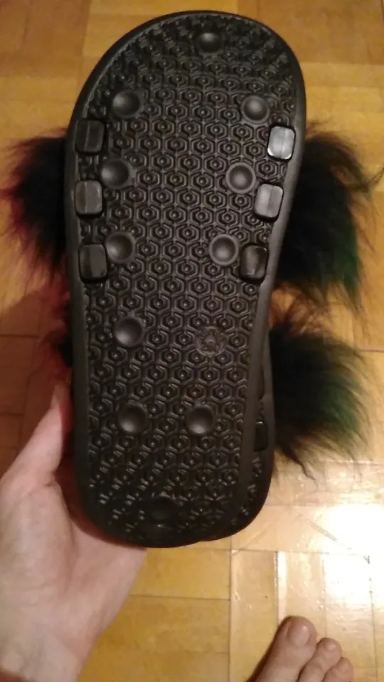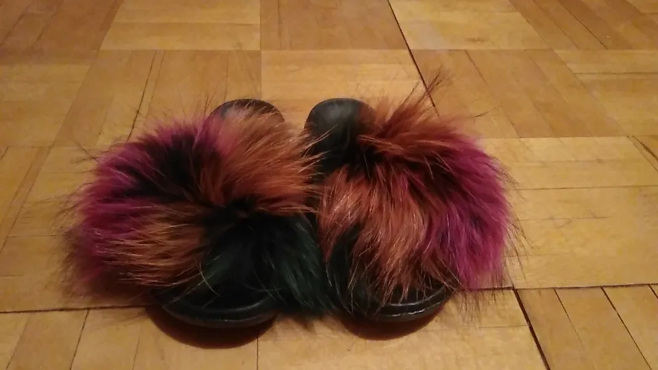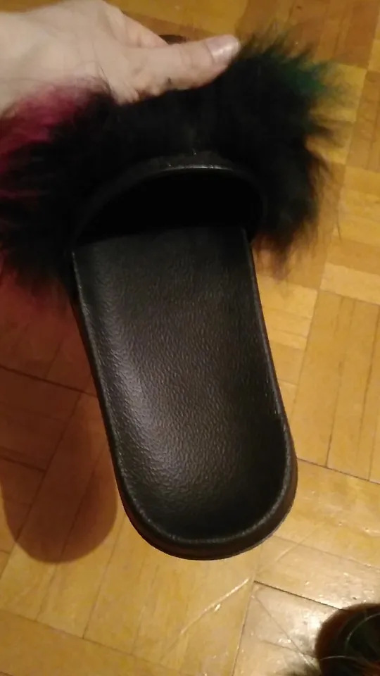 заказывала шлепки с бело-голубым мехом. к сожалению, пришло то, что пришло... такой расцветки не было даже среди вариантов к выбору. откуда достали? не понятно... мех на ощупь приятный, мягкий, хорошо расправляется, ворс длинный. к шлепкам мех просто приклеен. по длине стопы подходят, а вот по ширине оказались великоваты (но у меня ступни достаточно узкие). продавец извинился, предлагал вернуть 50% стоимости, но решением али-экспресс сделали почти полный возврат. покупкой расстроена, так как очень ждала их, а пришло не то, что хотела. носить не буду. "увы" и "ах"